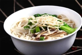 가슴살을 실처럼 찢어서 밀국수를 넣고 끓인 면