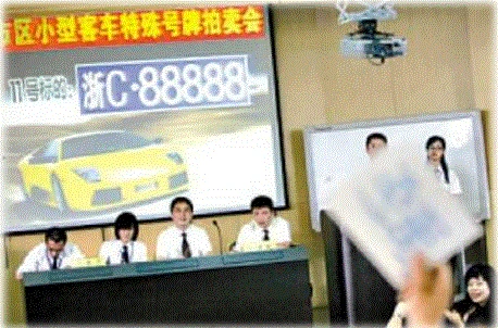‘八’은 ‘發財(돈을 벌다)’의 發과 발음이 유사하기 때문에 중국인이 굉장히 좋아하는 숫자이다. 북경에서 개최된 제29차 올림픽의 개막시간도 2008년 8월 8일 저녁 8시였다. 쓰촨 성의 전화번호 88888888은 233만 위안에 낙찰되었다고 한다. 2006년 저장성 원조우(溫州)의 한 신발 공장 사장이 자동차번호 浙C8-88888을 166만 위안에 낙찰받았다. 경매 수수료 5%를 더하면 자동차 번호판 가격은 무려 177.3만 위안(3억 6,500만 원)이나 된다.