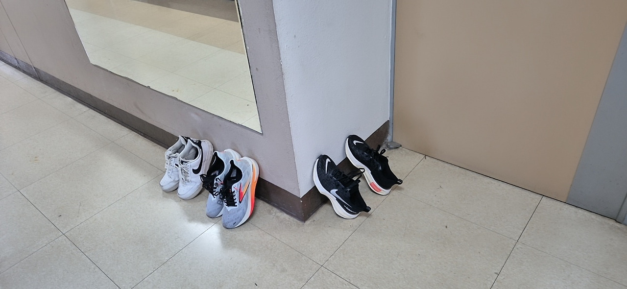 가지런히 빨랫줄에 널린 하얀 수건과 훈련하며 입고 뒹굴었던 운동복이 정리되어 걸려있는 창가,