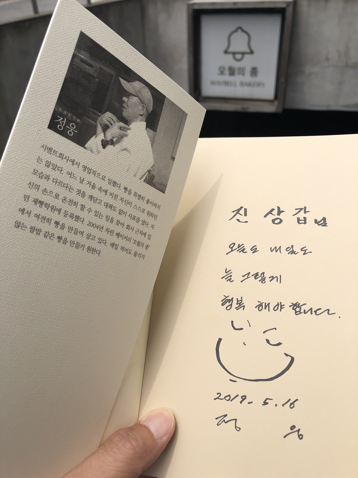 책을 보다가 이 빵을 먹으며 읽어야 겠다 싶어서 직접 이태원으로 출동하였고, 운이 좋게 대표님으로 부터 직접 사인도 받았다.