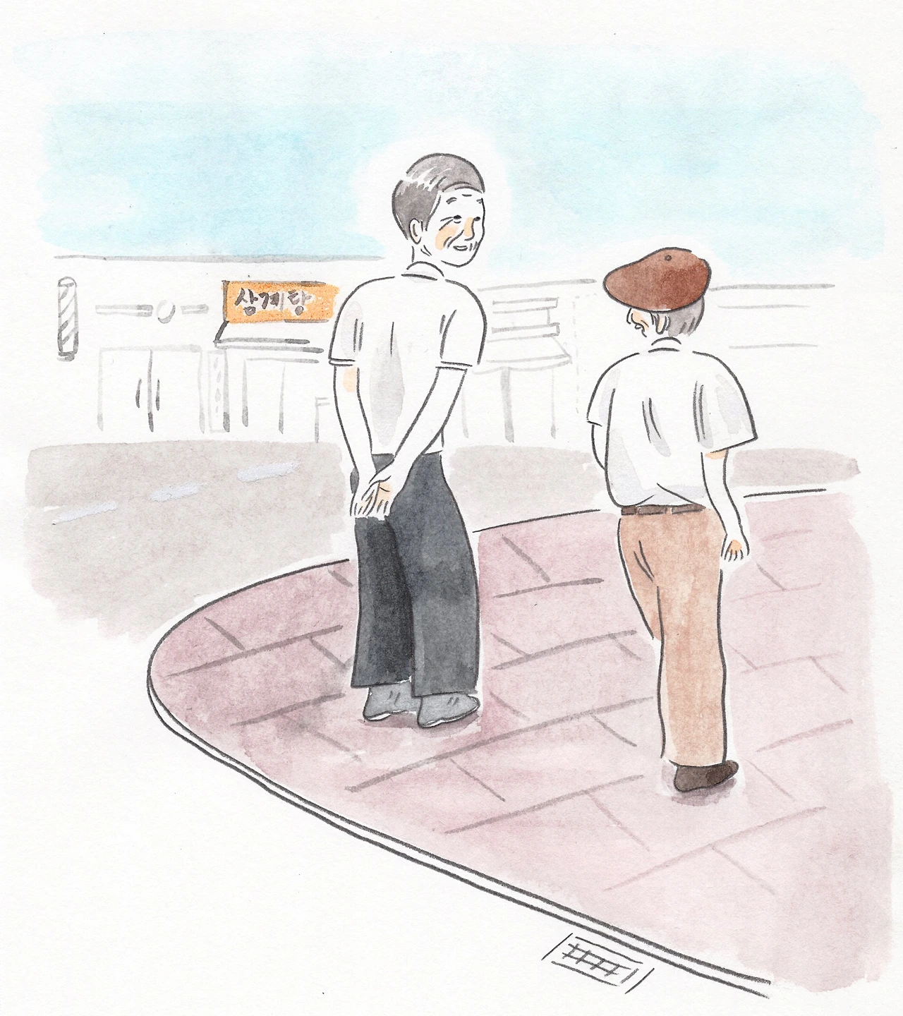깨끗한 하얀 상의를 입은 할아버지 두 분.