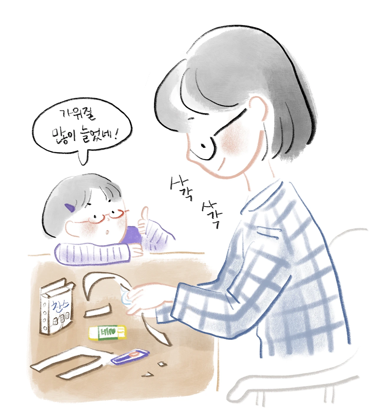 그동안 손도 크고, 가위질도 늘어서 어려워 보이던 편선지도 금방 만든다.