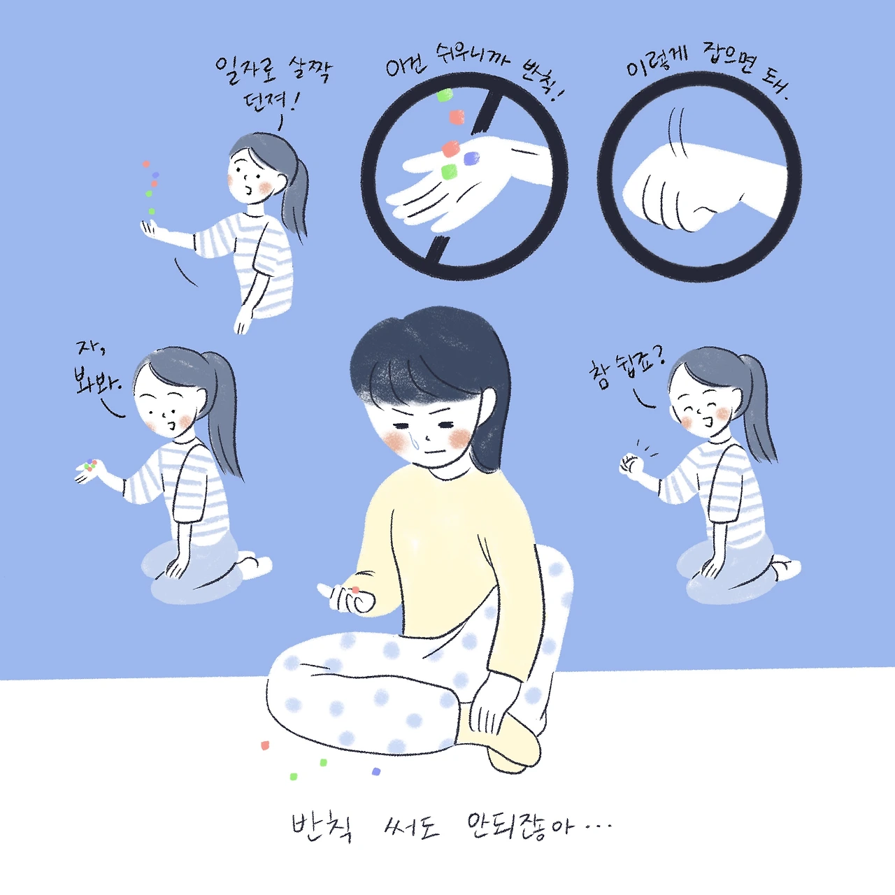 예전에 들었던 여러 조언을 떠올려봐도 소용없고, 내 손만 탄성이 강해서 공깃돌이 다 튕겨나가는건가 싶다.