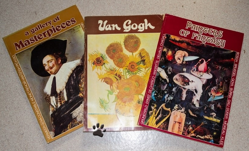 사진 왼쪽에 왼쪽에 있는 '마스터피스'는 말 그대로 명작들을 소개하는 책자였기 때문에 어느 정도 이해가 쉬운 편이었고, 가운데에 있는 '반 고흐'는 그래도 유명한 무언가를 보여주었던 것이지만 오른쪽에 있는 '판타지의 미술가들'은 제가 거의 모르던 부분이었습니다.