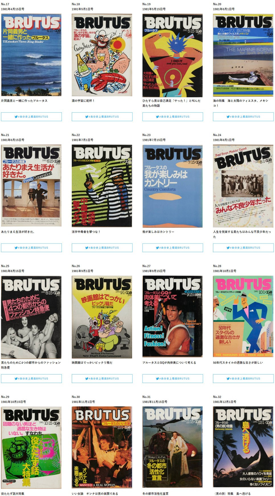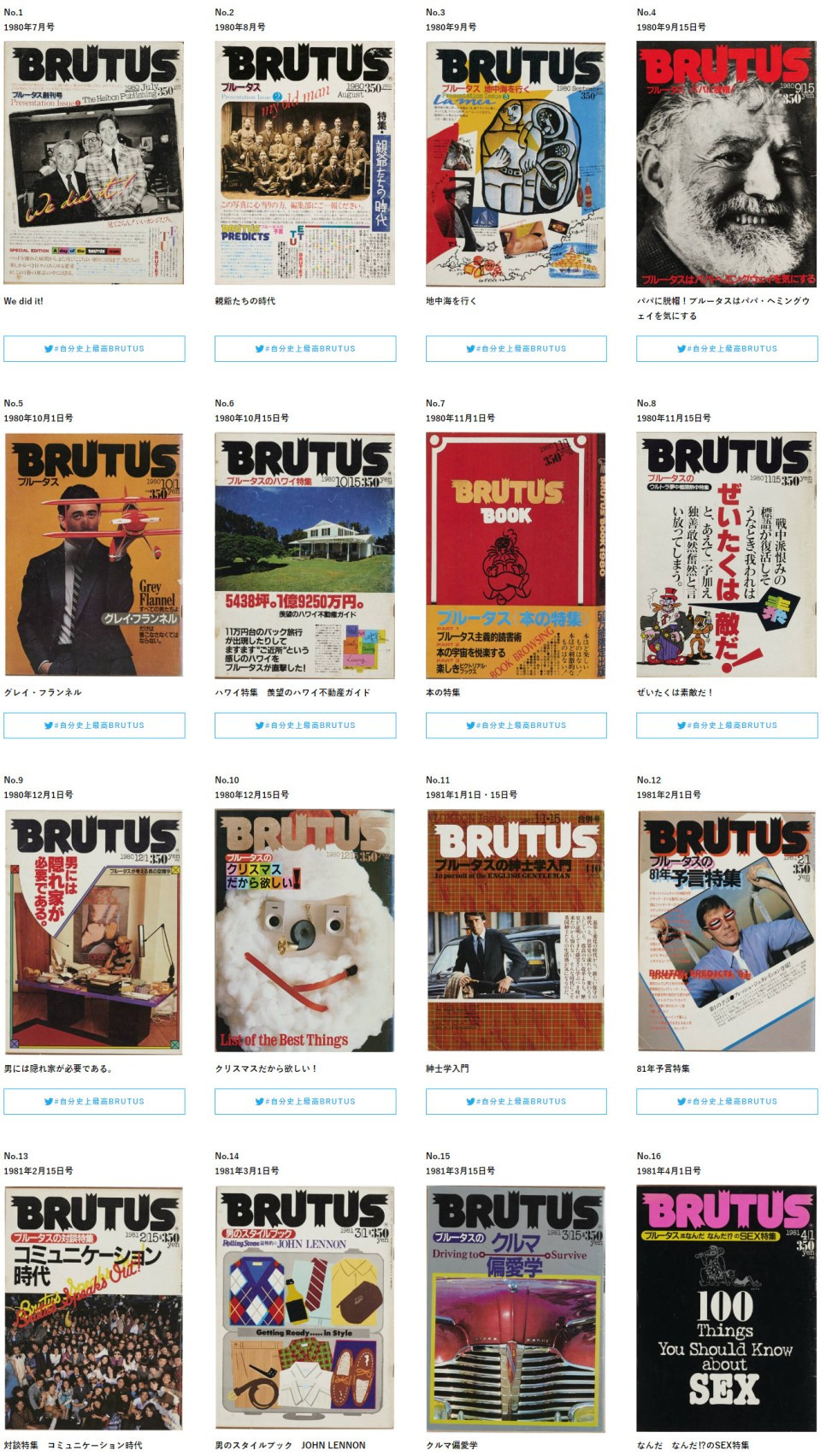 이번에 홈페이지를 가보니 브루터스가 40주년을 맞이하면 창간호를 완전히 공개했더라고요.