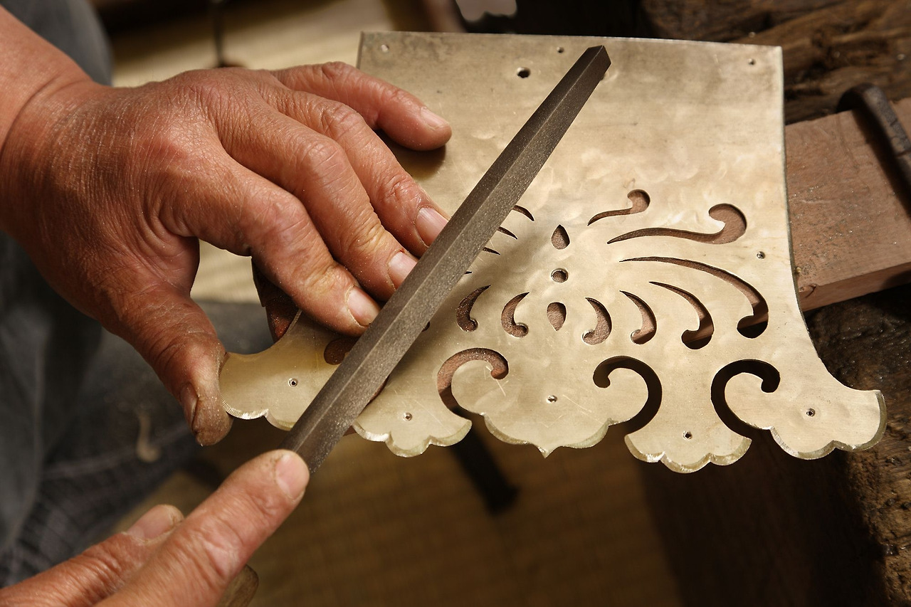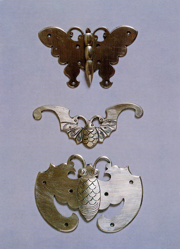 두석장이 제작하는 제비초리 장석장석이란 목공품 같은 생활 용품을 제작할 때에 기능의 필요성에 의해 몸체에 부착되는 금속재의 장식을 통틀어 말합니다. 모든 금속재의 장식을 통틀어 말한다면, 자물쇠, 경첩, 손잡이… 등등 이 모든 것을 말합니다.