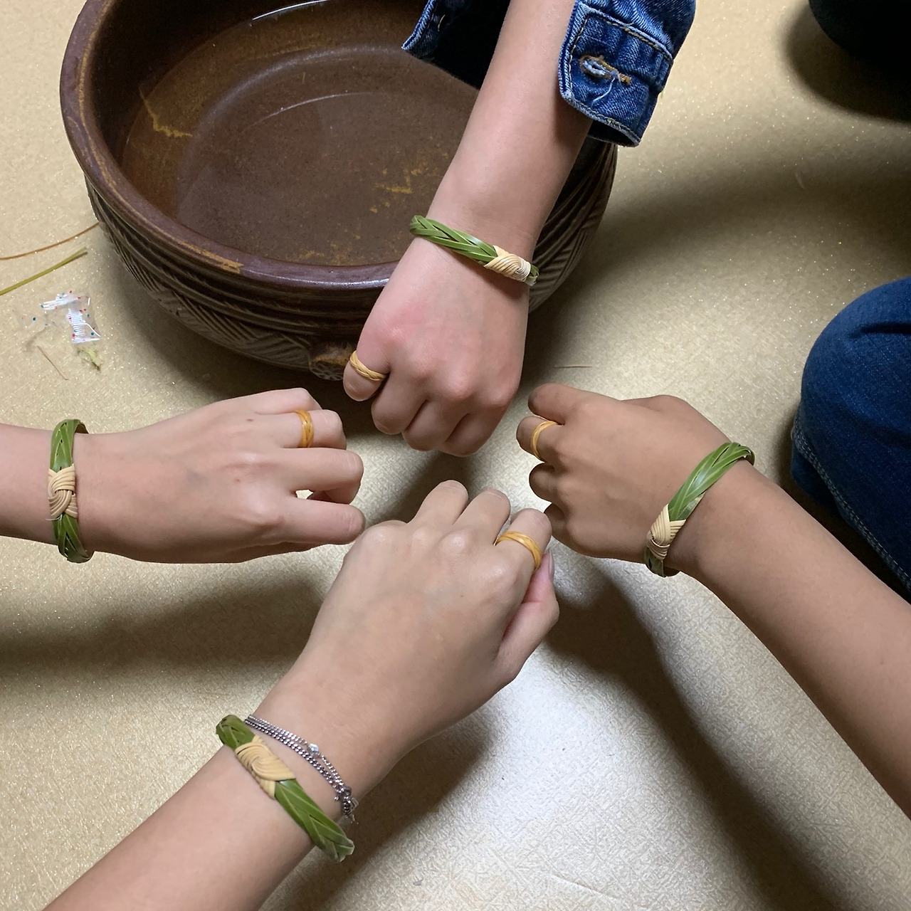 이후 선생님과 함께 대나무를 사용해 간단히 팔찌를 만들어볼 수 있는 시간이 있었습니다.
