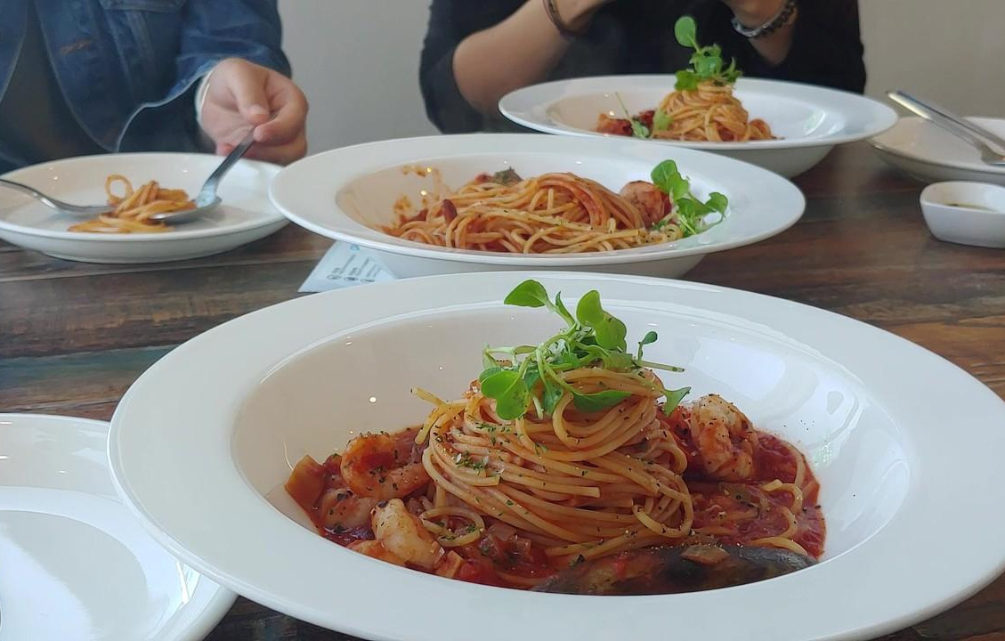 “점심은 바로 먹으러 갈까요? 최근에 맛있는 파스타 집이 생겼는데 파스타 어때요?”