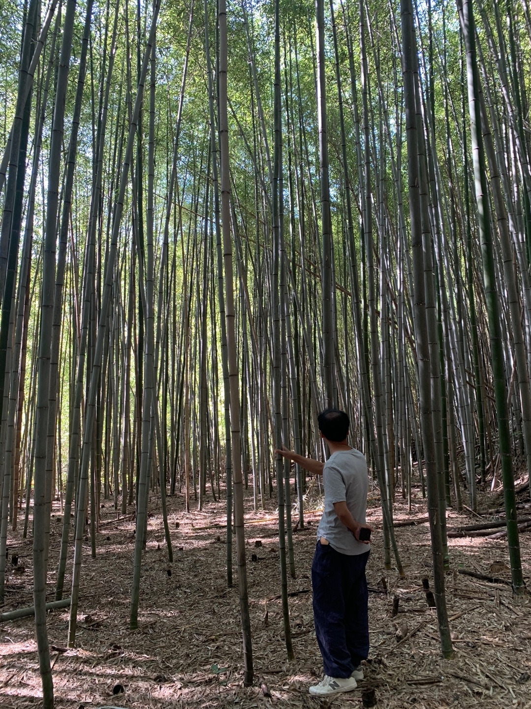 대숲에서 선생님은 자신이 가장 멋지다고 생각하는 한 그루를 소개해주셨습니다. 아니나 다를까, 아주 곧고 굵은 대나무는 아직 자라고 있는지 아주 싱싱판 푸른빛이었습니다. 이 대나무의 어릴 적 모습도 사진으로 자랑해주셨는데, 좋은 대나무에 상기되신 모습을 보며 과연 이 친구는 어떤 작품으로 재탄생하게 될까, 기대가 되었습니다.