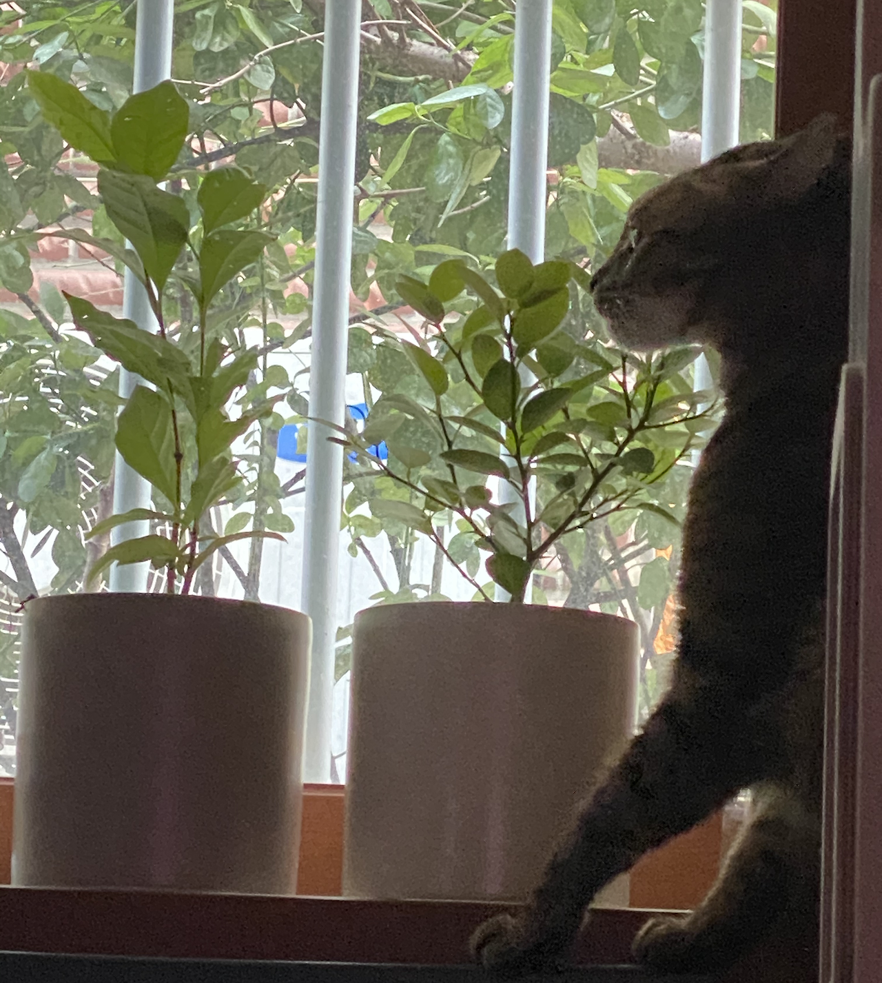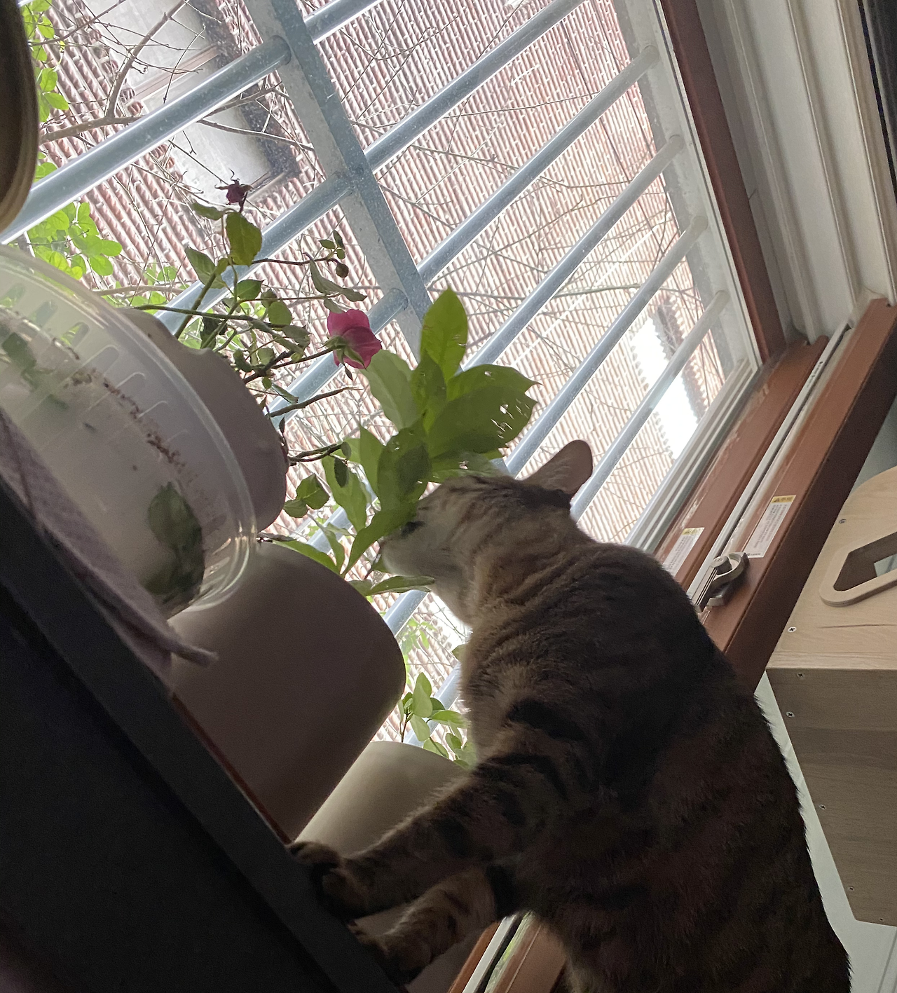 그렇게 식물 키우기에 대한 열망이 줄어들었고, 고양이가 세 마리가 되고 몇 번의 겨울이 지나는 동안 화분을 집안에 들여놨는데, 어라? 또또구 삼형제가 화분에 관심이 없다. 옳타구나 하고 예쁜 사계장미와 커피나무 묘목을 샀다. 어울리는 작은 화분도. 그리고 침대 머리맡 창가에 두고 애지중지 물을 주고 낙엽을 따주었다.