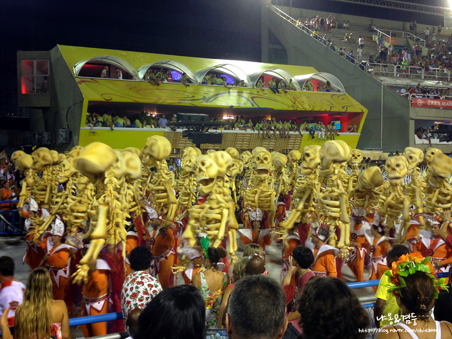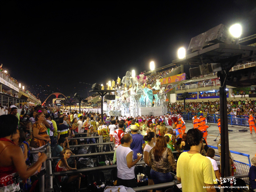 다음날 저녁 늦게 삼바 축제가 열리는 곳에 갔다. 암표상들은 오늘이 마지막인 것처럼 티켓! 티켓! 하며 소리쳤고 우린 한 암표상과 끈질긴 흥정 끝에 값싸게 경기장에 들어갔다. 태어나서 처음 보는 압도적인 스케일, 경쾌하게 울려 퍼지는 음악, 자연스럽게 리듬을 타며 흔들어대는 몸놀림! 이게 진짜 삼바구나! 설운도가 삼바~ 삼바~ 하며 부르는 노래는 전형적인 한국 노래였구나! 그곳엔 인종도, 나이도, 직업도, 가치관도 중요치 않았다. 삼바 축제는 이 모든 것을 뜨거운 열정 하나로 전부 녹여버렸다. 퍼레이드는 50분간 지속되고 10분 쉬는 형식이었는데 우린 세 번째까지 본 후 숙소로 돌아와 그대로 기절했다.