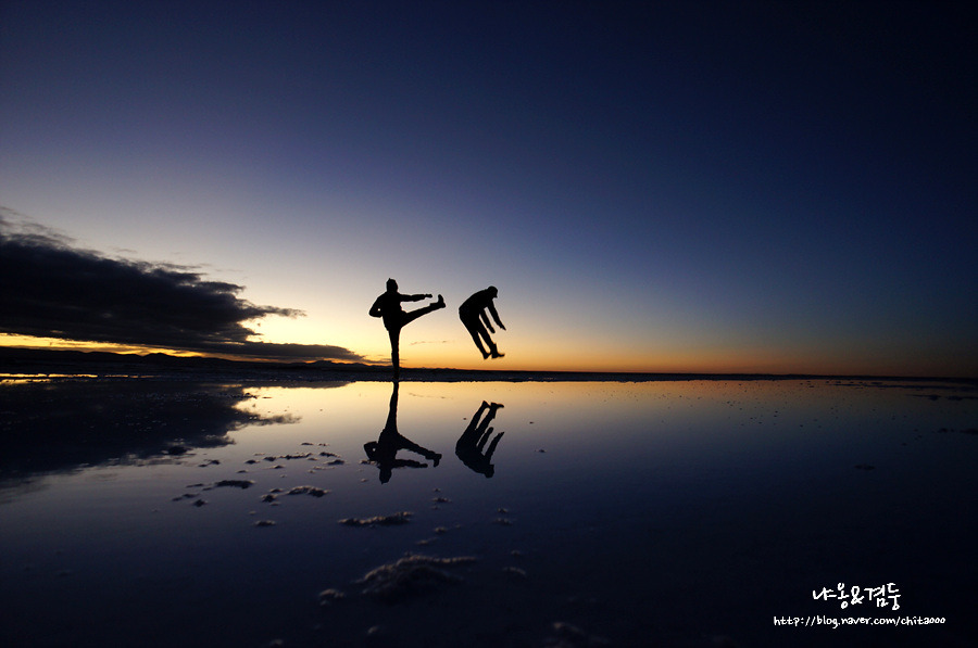 다음날 새벽 2시 반. 평소 같으면 꿈나라에 있을 시간에 턱이 빠져라 하품을 하며 터벅터벅 여행사로 걸어갔다. 그나저나 한중일 사람들 대단하다. 아무리 우유니에서 별 보고 일출 보는 게 좋다지만 이 새벽에 투어를 하다니! 그러고 여행사도 그렇지 아무리 그래도 이런 투어를 만들다니! 돈이 전부는 아니잖아!(아닐걸?) 장갑에 핫팩까지 준비해서 그런지 생각만큼 춥지 않았다. 잠시 후 자신을 '조니'라고 소개한 가이드의 차를 탔다. 그런데 지금 이 남자가 자신을 '조니'라고 소개한 건가? 조니는 한국 여행자들에게는 사진 잘 찍는 가이드로 유명하다. 그래서인지 '우유니 사진'하면 '조니'가 떠오르는 것은 '밥', '김치'처럼 지극히 자연스러운 일이다. 문제는 얼굴이다. 봉고차에 탄 사람들 중에 조니 얼굴을 아는 사람이 단 한 명도 없었다. 뭐 조니면 어떻고 조커면 어떠하리! 별 보고 일출 보면 충분하다. 어서 별 보러 가자!