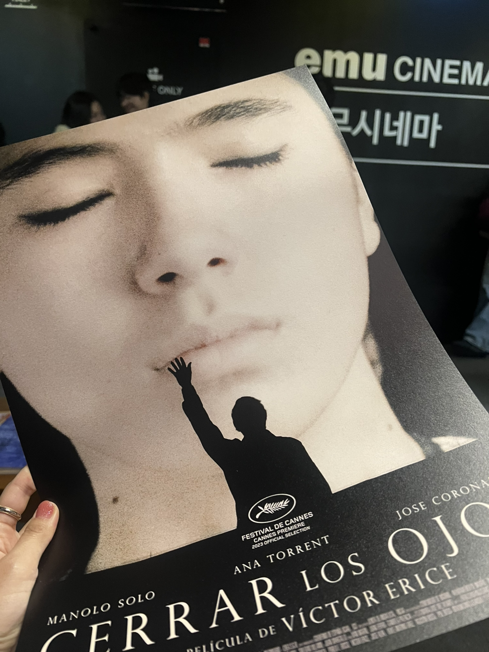 빅토르 에리세 감독의 신작, ‘클로즈 유어 아이즈’를 보러 갔다. 부산 국제 영화제 최고 기대작 중 하나였고 감독의 20-30년 만의 신작이라 무척 궁금했다. 에무시네마에 가니 확실히 영화 전공 학생이 많이 온 것 같았다. 그만큼 씨네필이 필수적으로 봐야 할 영화라는 것이겠지? 에무시네마는 겨울에 가기에 최악인 곳에 있지만 영화를 좋아하는 사람이라면 굴복할 수밖에 없는 프로그램을 갖고 있다.