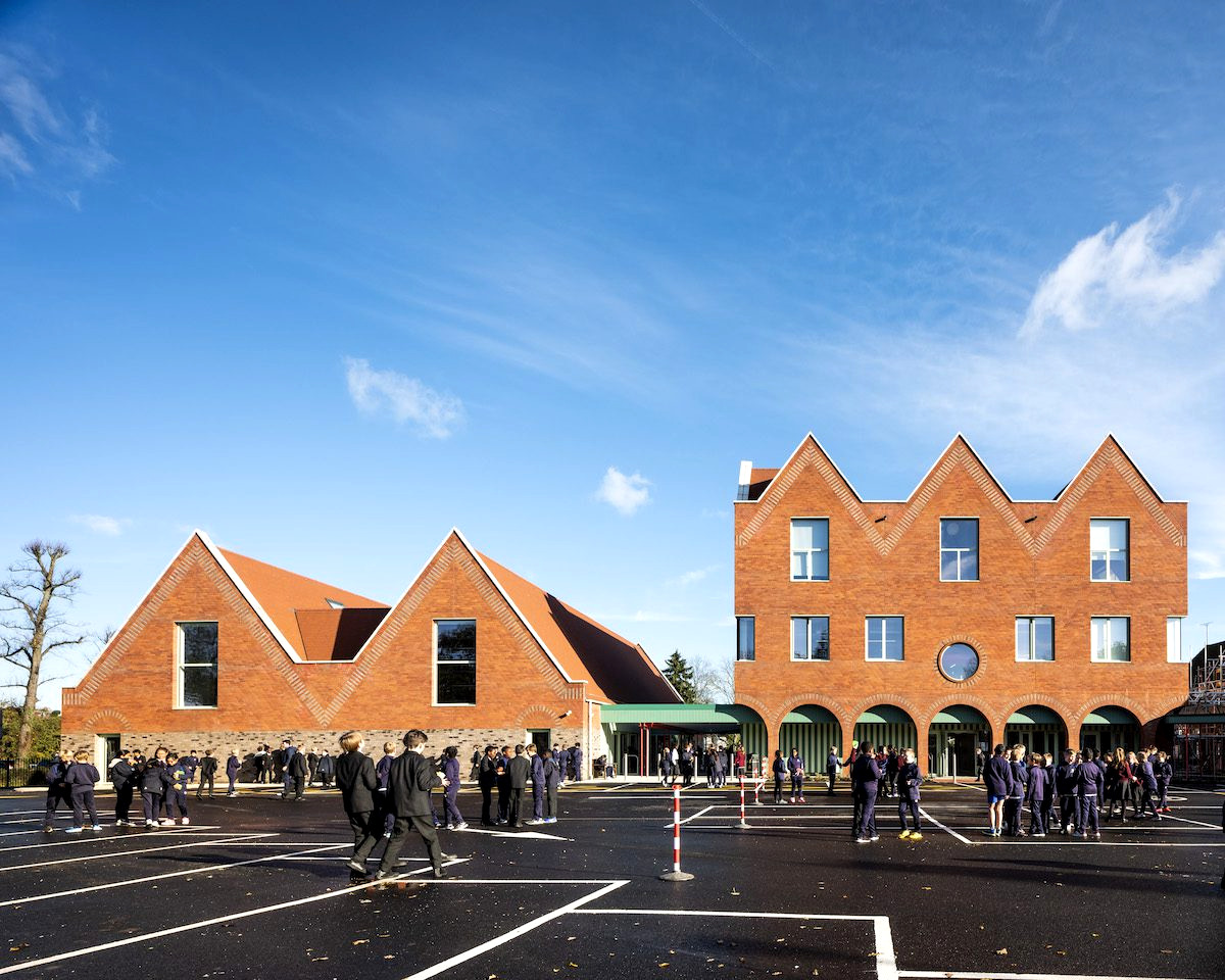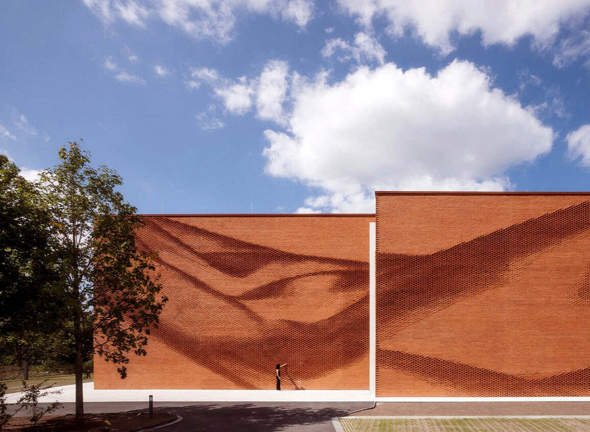 벽돌의 단점은 쌓아 올라가는 조적의 방식으로는 공간의 형태나 크기에 따라 제약이 있고, 인장력의 부재로 내진에 취약하다는 것이었습니다. 어느 순간 구조적으로 쓰이지 못하는 벽돌은 타일이 되어버렸다는 박한 평가를 들으며.... 벽돌의 동생 타일에게 그 영광을 빼앗겼던 시절도 있었습니다. 지금도 구조재로 쓰이는 경우는 드물지만 연결철물공법으로 여러 층을 연결해 쌓을 수 있거나 더 큰 매스를 만들 수 있게 되었습니다. 디테일과 스케일을 넘나들며 다 표현할 수 있는 벽돌! 벽돌은 이제 시루떡같이 슬라브를 층마다 내밀어 그 사이에 벽돌을 쌓던 전형적인 학교 건축의 어휘에도 변화를 가져왔습니다.