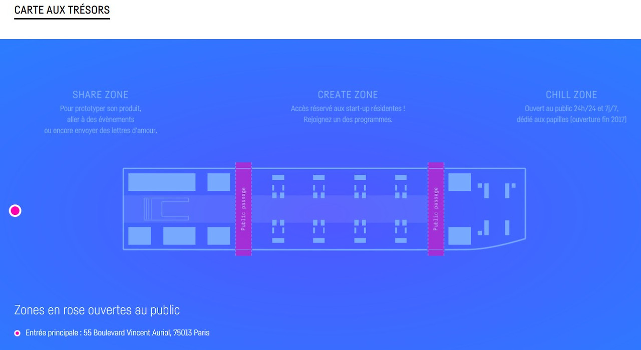 스타트업을 위한 프로그램이 은밀하게 진행되는 곳이다. 대표적으로 페이스북의 스타트업 개러지(Stratup Garage), 프랑스 최대 인터넷 쇼핑 업체 방트 프리베(Vente-privee)의 임펄스(Impulse) 네이버의 스페이스 그린 등이 있다. 스타트업이 이들 글로벌 기업의 노하우를 바탕으로 인큐베이팅되는 곳이다. 공간 구성을 보면 협업을 하는 탁 트인 공간에 만들어진 개방된 코워킹 스페이스도 있지만, 소음과 시선으로 보호되는 숨기 좋게 만들어진 재미있는 공간들도 보인다.