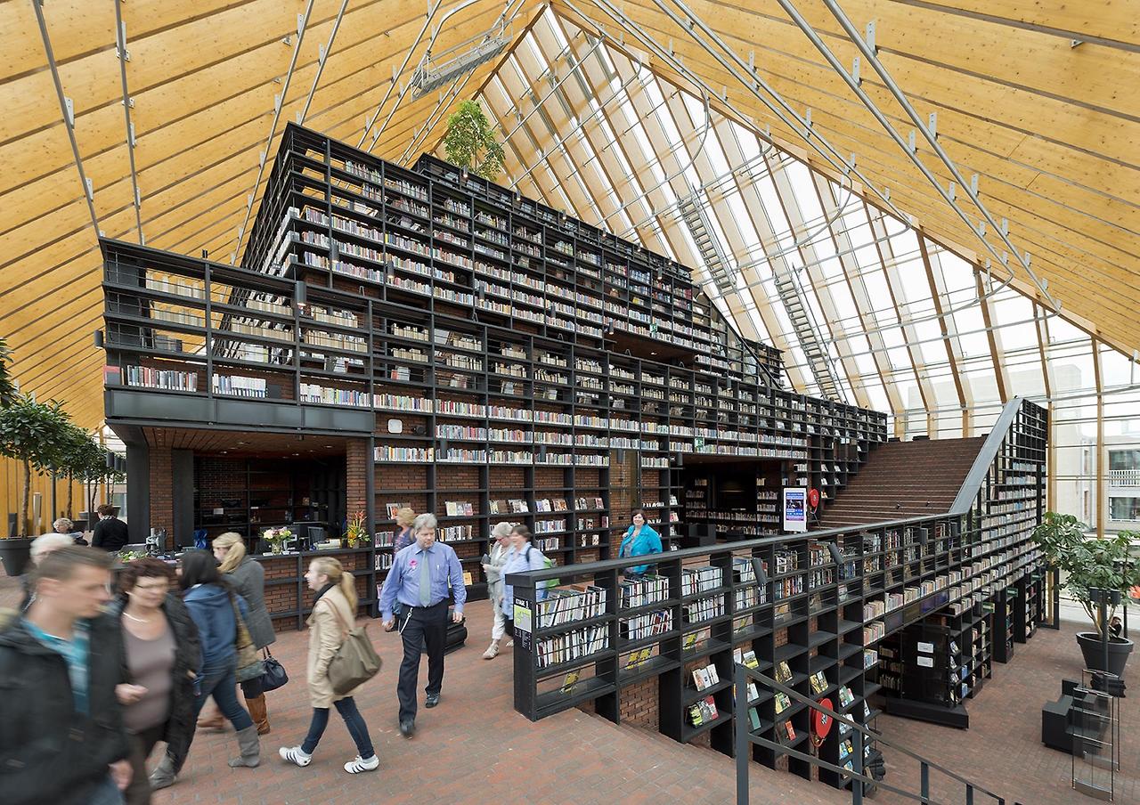 도서관은 천창을 통한 자연통풍 환기시스템과 목재 프레임 사이 차양으로 일사량을 조절하여 에어컨을 사용하지 않는 친환경 건물이라고 합니다. 태양 직사광에 노출된 책장에 보관된 책들이 바래는 등 도서관 운영자에게는 기능적인 도서관은 아닐 수 있지만, 책을 쌓아 올린 거대한 책더미를 산처럼 올라가게 만든 내부와 그 위를 덮은 유리 지붕의 독특한 디자인은 아름다운 도서관으로 불리기 충분한 것 같습니다. 작고 조용한 도시에 있는 이 도서관은 2013년 레드닷 디자인 어워드 수상작으로 뽑히며 더욱 유명세를 타게 되었습니다.