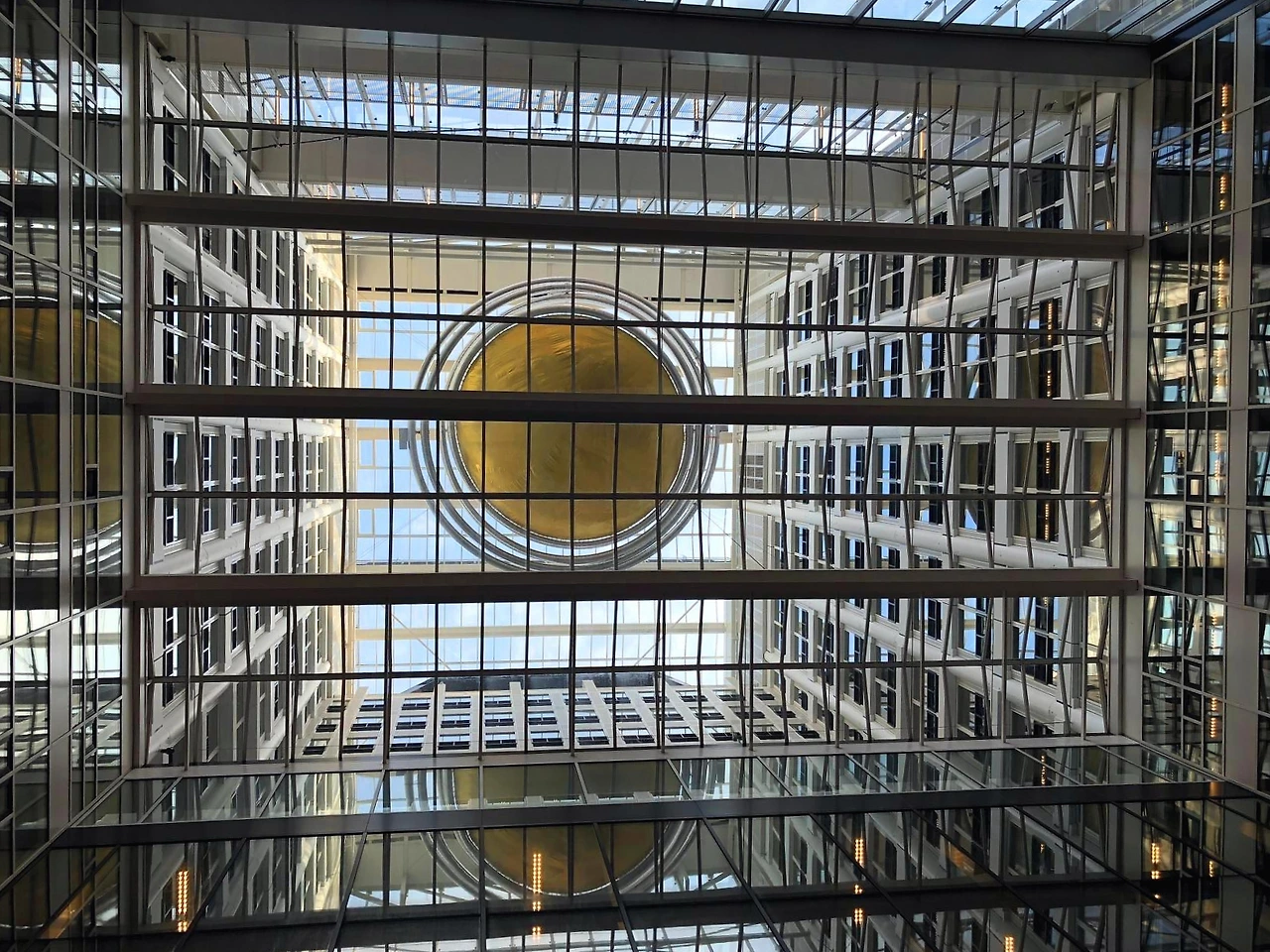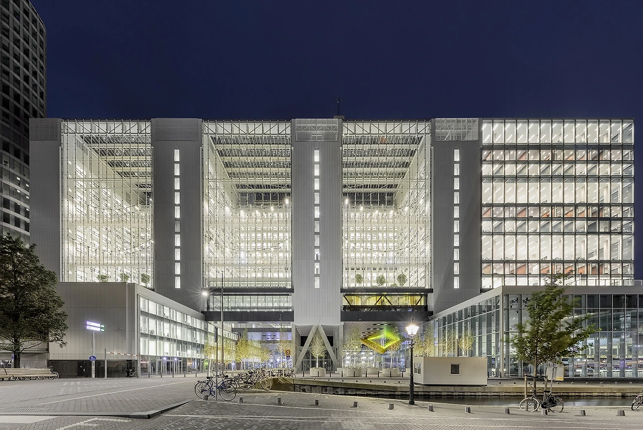 역에서 나오면 바로 보이는 청사건물로 공공보행로에서 아뜨리움을 볼 수 있습니다. 기존 정부청사를 리노베이션 하면서 청사 업무시설의 면적을 줄이게 되었고, 설계를 맡은 OMA는 기능적으로 업무 공간과 일반 상업시설을 유연하게 배치하여, 정부청사 건물의 모범을 보여주는 새로운 청사이자, 동시에 친환경적으로 설계했다고 합니다. 기존 건물의 끝 단 (현재 입면 모양이 다른 부분)20%를 해체하여 리노베이션을 하게 되었는데, 그 과정에서 나온 자재 99.7%를 재활용했고, LED와 단열재를 활용해 에너지 제로 건물로 재탄생하게 되었습니다.