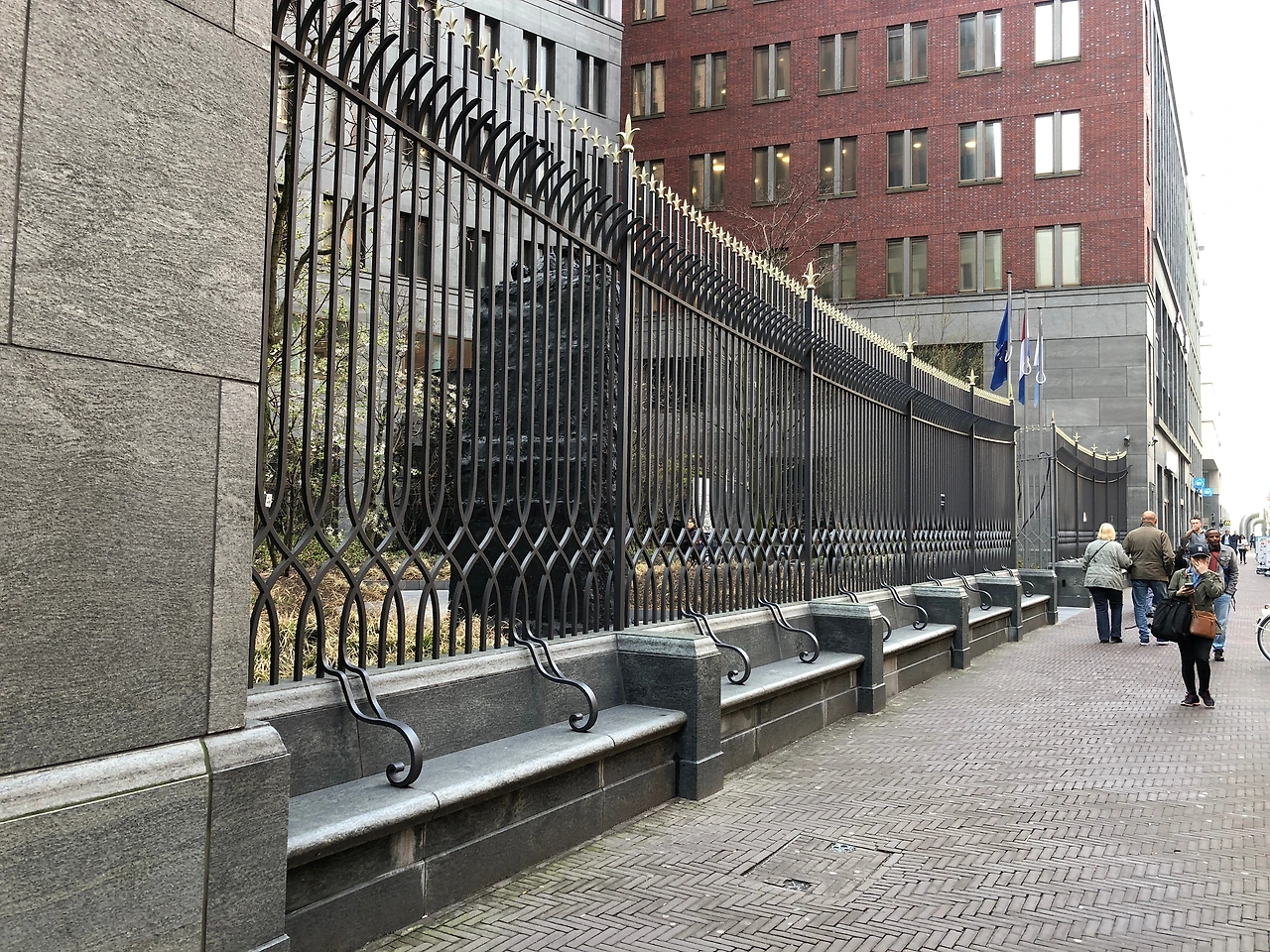 투명한 커튼월 건물인 정부청사를 지나면 갑자기 분위기가 사뭇 다른 벽돌로 지은 고층의 법무부 건물이 등장합니다. 역동성과 투명함을 표현하는 재료로 커튼월을 쓴다면, 중립적이고 보안을 철저히 해야하는 건물에는 견고한 재료를 쓰는 것이 어울립니다. 1946년생인 Hans Kollhoff의 건축물은 고전적인 건물 스타일과 전통적인 방법에 따라 가공된 석재 및 벽돌과 같은 견고하고 전통적인 재료를 사용하는 것이 특징이고, 이런 이유로 그는 때때로 전통적인 형식주의에 대한 향수를 불러일으키는 구식 "레트로 아키텍처"라는 비난도 받았다고 합니다. 하지만 고층 법원 건물뿐만 아니라 암스테르담의 Apartment Building in the KNSM-Eiland Residential Building 까지 보고 나니 사진으로는 올드해 보였던 것이 현장에서 보면 기품이 있었고, 디테일은 섬세했으며 창문의 비례는 참 아름다웠습니다. 시간이 흘러도 변하지 않는 존재감을 뽐내며 사랑받는 뉴트로 건축?의 가능성이 있는 곳이 아닐까하는 생각이 듭니다.