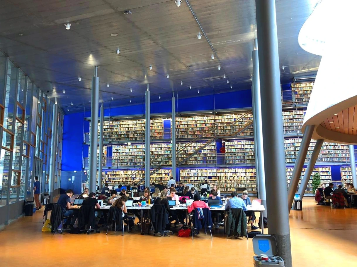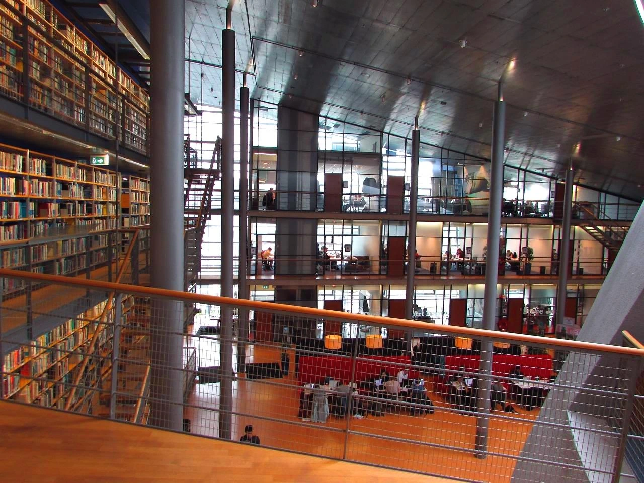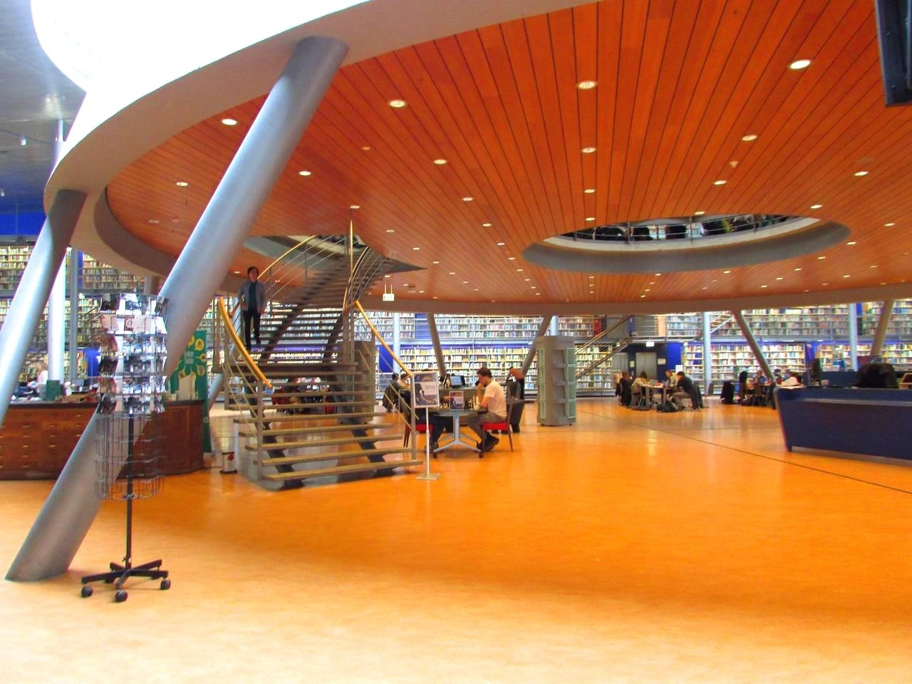 탄생비화를 요약하자면 Delft University of Technology (TU Delft)는 Mecanoo사에 대학의 심장부가 될 도서관 설계를 의뢰했고, Mecanoo사는 녹화된 지붕과 기울어진 잔디밭으로 덮인 도서관 중간에 기술 공학의 상징인 콘을 관입하여 도서관으로서의 상징을 표현했다고 합니다. 디지털 전환을 염두에 두고 설계된 TU Delft의 상징적인 도서관은 여전히 개장 한 지 10년이 넘어도 도서관 본질의 기대치를 충족하고 있다는 평가를 받고 있습니다. 산이 많은 우리나라는 협곡 같은 이미지로 도서관을 상상하기도 하는데, 네덜란드는 온통 평지이기 때문에 언덕과 산에 대한 동경이 있는 것일까 하는 생각이 들었습니다.