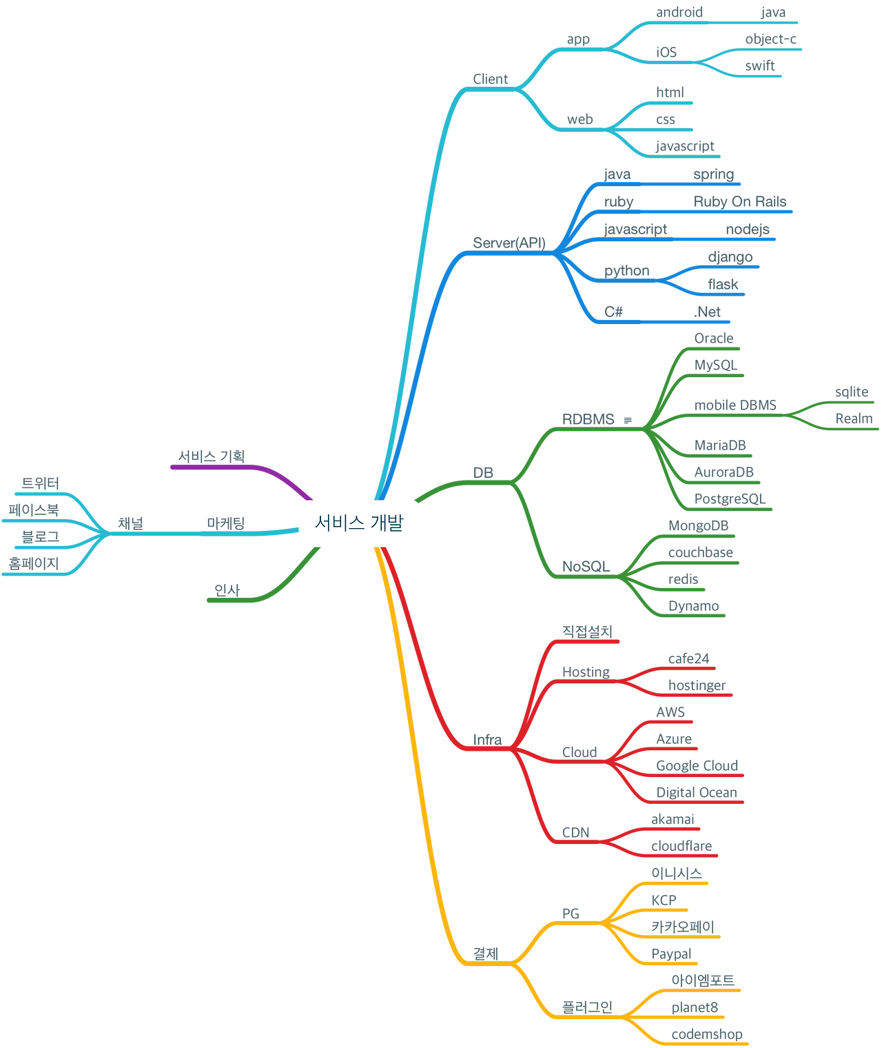 그러다보니 자연스레 마인드맵을 그리게 됐고, 한번 보기 아까워서 이렇게 브런치에 올려봅니다. 앞으로 이 마인드 맵을 토대로 창업 또는 서비스 개발시 어떤 것들을 고려해야하며, 그것들의 정체가 무엇인지 밝혀보도록 하겠습니다.