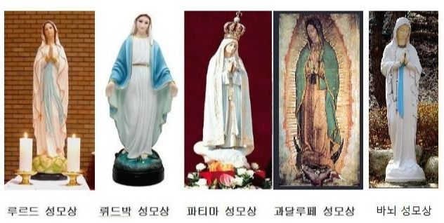 집 현관에 작은 성모상이 있다. 아내가 미국 뉴저지 성당에서 세례를 받을 때 구한 것이다. 아내는 성모상에도 몇 가지 종류가 있다며 알려주었다. 파티마의 성모(Our Lady of Fatima)는 세 아이에게 나타났을 때 모습을 하고 있다. 구름을 밟고 나무 위에 서 있는 자세다.