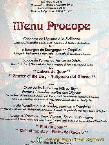 카페 프로코프는 지하철 오데옹 역에서 걸어 5분 거리다. 문을 여니 식사를 할 건지 차를 마실 건지 물었다. 이곳은 아직 화려한 예전 모습을 그대로 간직하고 있다. 벽에 걸린 거울이며 촛대, 대리석으로 만든 테이블 상판은 유럽 카페의 '럭셔리' 기준이 됐다. 프로코프가 만든 세련된 분위기에 잘 나가는 파리 엘리트들이 몰렸다. 루소(Rousseau), 볼테르 (Voltaire), 디드로(Diderot) 같은 계몽주의 철학자가 드나들었다. 청년 장교 나폴레옹도 단골이 됐다. 디드로는 여기서 최초의 백과사전을 집필했다. 카페 프로코프가 입소문이 나자 파리에만 비슷한 카페 2천 개가 문을 열었다.