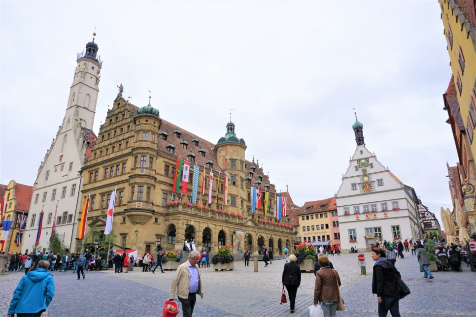로텐부르크의 원래 이름은 로텐부르크 옵더 타우버(Rothenburg ob der Tauber). 우리말로 '타우버 강의 붉은 요새' 란 뜻이다. 프랑크 왕국 시절인 9세기에 건설되었다. 부르크(burg)는 원래 성이란 뜻인데 '부르주아'(성 안에 있는 사람들)란 말이 부르크에서 나왔다고 한다. 로텐부르크는 이름에서부터 부티를 내비친다.