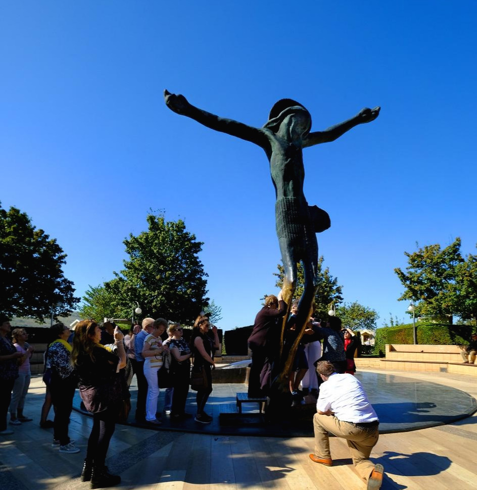 성당 복도는 25개나 되는 고해소로 꽉 차있었다. 우리는 참회의 밭을 걸어 청동 예수상을 찾아 밖으로 나왔다. 성경 속 마리아와 제자들은 십자가에 매달린 예수를 들어 내렸는데, 이곳 예수는 스스로 일어서는 모습으로 만들어졌다. 이름도 '메주고리예의 일어서는 예수상'(Medugorje's Risen Christ Statue)이다. 몸을 세우는 예수상의 오른쪽 무릎에서 신기하게도 물기가 흐른다. 이 물자국을 받으려고 언제나 사람들이 긴 줄을 선다. 처음엔 예수의 상처를 낫게 한다는 의미에서 그걸 닦았다. 지금은 예수의 상처를 닦은 물기로 환자의 아픈 곳을 문지르면 병든 사람이 치유된다는 믿음이 더 커졌다. 이제 전 세계에서 사람들이 모여든다. 소외된 사람, 뒤처진 사람, 아픈 사람들이다.