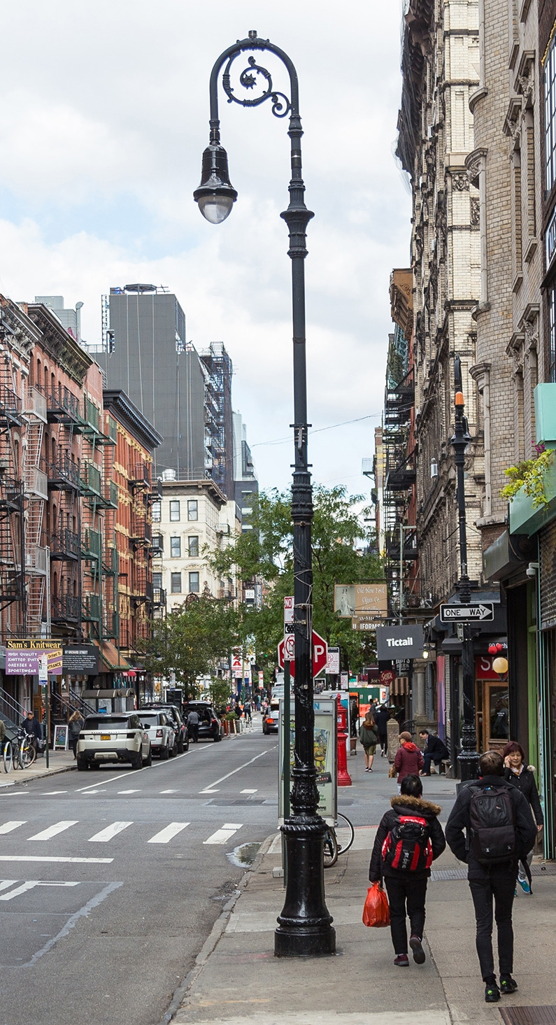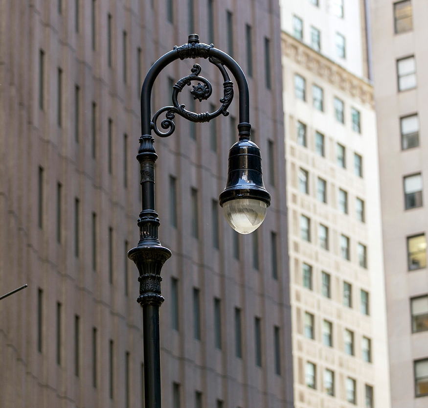 전 세계 가로등 수가 3억 2천만 개가 된다고 한다. 그중에 33만 개가 뉴욕에 있다고. 뉴요커들은 가로등을 스트리트 라이트라고 부르지만 나는 꼭 램프포스트라고 말했다. 그러면 폼이 더 나는 듯했다. 뉴욕랜드마크 보존위원회에 따르면 뉴욕엔 열세 가지 모양의 가로등이 세워져 있다. 그중에서 가장 오래된 게 가톨릭주교 지팡이 모양을 본뜬 '비숍의 굽은 지팡이'(Bishop's Crook Lamppost)다. 에디슨 컴퍼니의 중역, 리처드 보우키(Richard Bowke)가 처음 만들었다는데 나오자마자 뉴욕의 명물이 됐다. 지금은 그리니치 빌리지 주변에 제법 남아있다. 그게 미드타운 이 건물 앞에도 있어 좀 전에 거기다 용케 파킹을 한 것이다. 어렸을 때 자전거를 전봇대에 기대 놓곤 했는데 그 때문인지 자동차도 기둥 가까이 세우면 맘이 편했다.