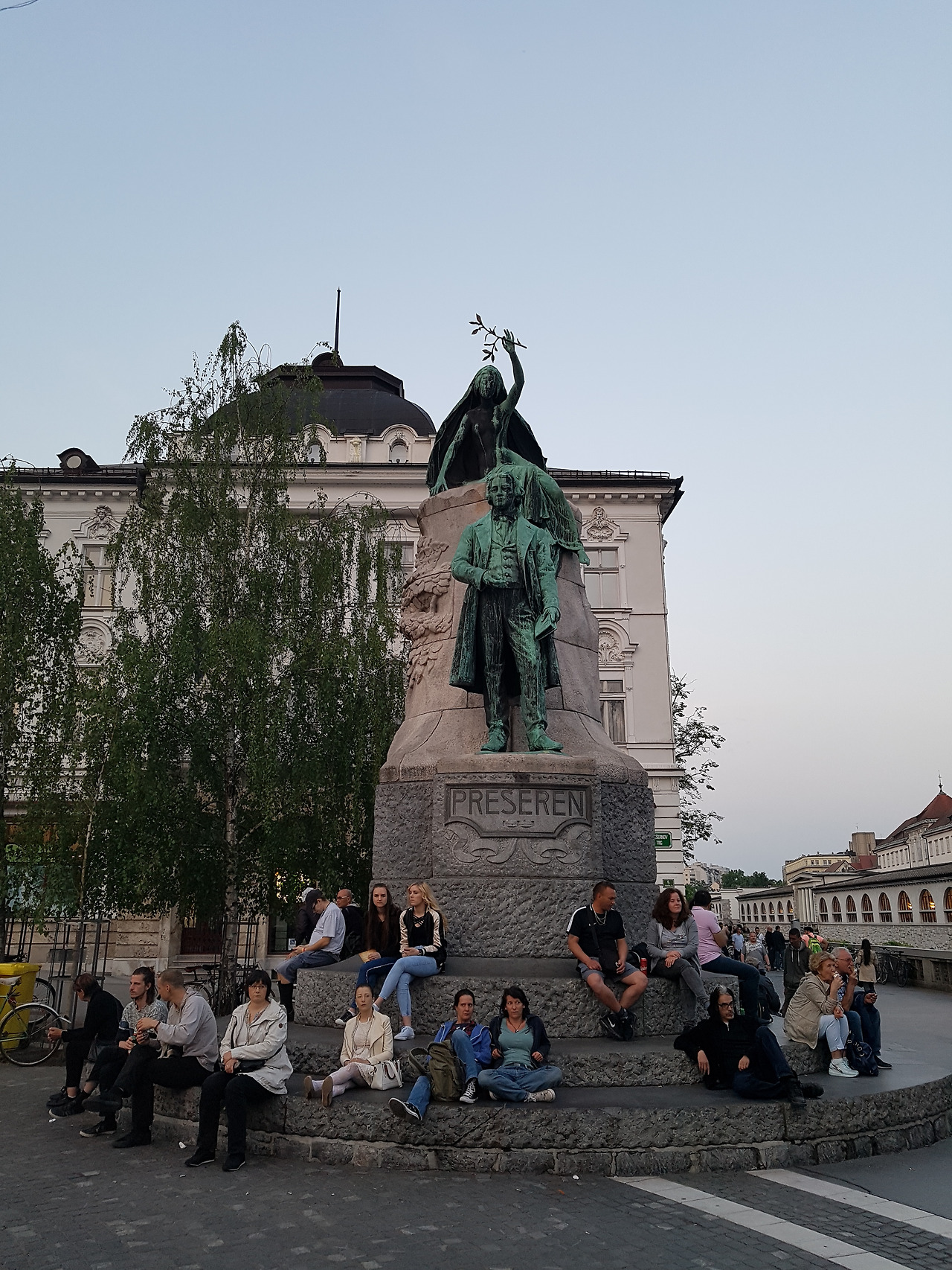 류블라니챠 강 안쪽에는 중세건물이 오밀조밀 들어앉았다. 강 바깥쪽은 프레셰렌 광장을 출발점으로 신시가지가 시작한다. 프레셰렌 광장은 슬로베니아 민족시인 프란체 프레셰렌을 기념하는 곳이다. 광장에 그의 동상이 서 있다.