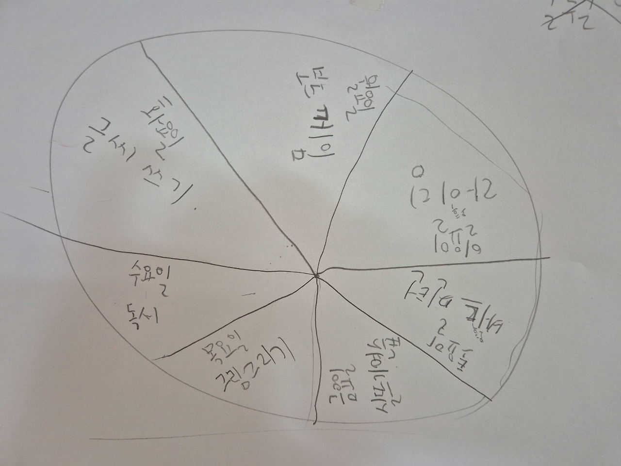 우리는 평일에는 매일 30분, 주말에는 1시간 이상 미디어를 끄고 아이와 함께 하는 시간을 만들었다. 매일 저녁 저녁을 먹고 난 후, 엄마가 식사 뒷정리를 하는 30분 간 아빠와 아이가 함께하는 시간을 내기로 하였다. 막상 놀기로 하고는 매일 '뭐 하고 시간을 보내지?' 하면서 처음에는 이런저런 시간 때우기인 날도 많았지만 이제는 나름대로 노하우가 쌓여서 그 시간만큼은 최선을 다해서 몰입하며 시간을 보낸다. 아이와 함께 요일별 시간표를 짰다. 보드게임, 글씨연습, 독서, 그림 그리기, 실뜨기 배드민턴, 라이딩 등 요즘 관심사를 적용하여 구성하였다.