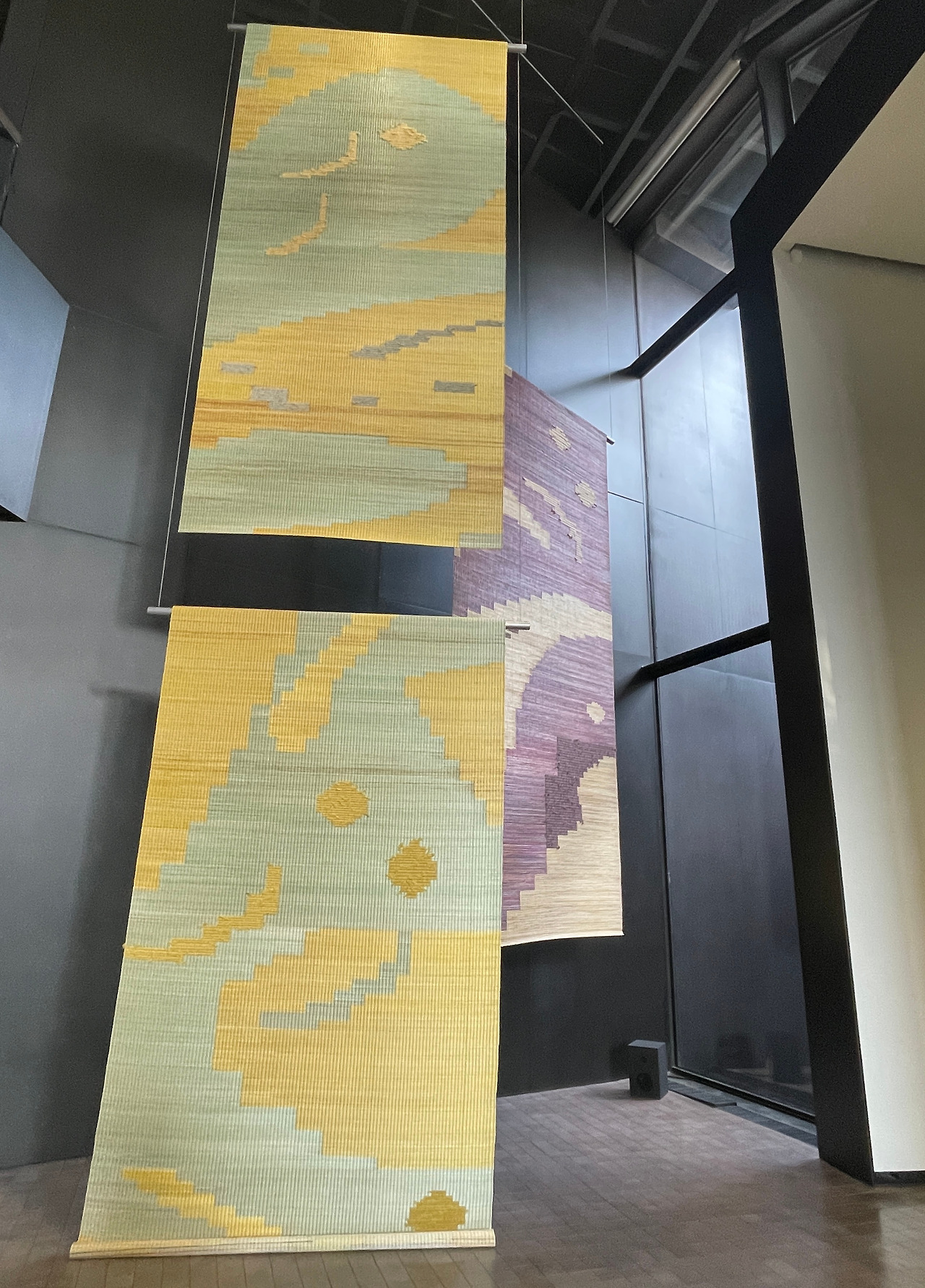 -어쩌면 미술관이 아니고 늦더위가 가시는, 산으로 둘러싸인 초원에 온 것 같았다. 전시장의 공간에 사각형의 틀이 수직 수평의 선을 만들고, 봄 여름 가을 겨울의 산을 형상화한 봉우리가 둥그런 곡선을 만든다. 갈대로 엮은 색색의 자리가 면을 만들며, 사람의 형상처럼 보이는 바퀴 달린 <좁은 초원>시리즈가 드넓은 논의 허수아비 같기도 하다. 말 그대로 미술관 산책하기 좋은, 그런 곳이다.