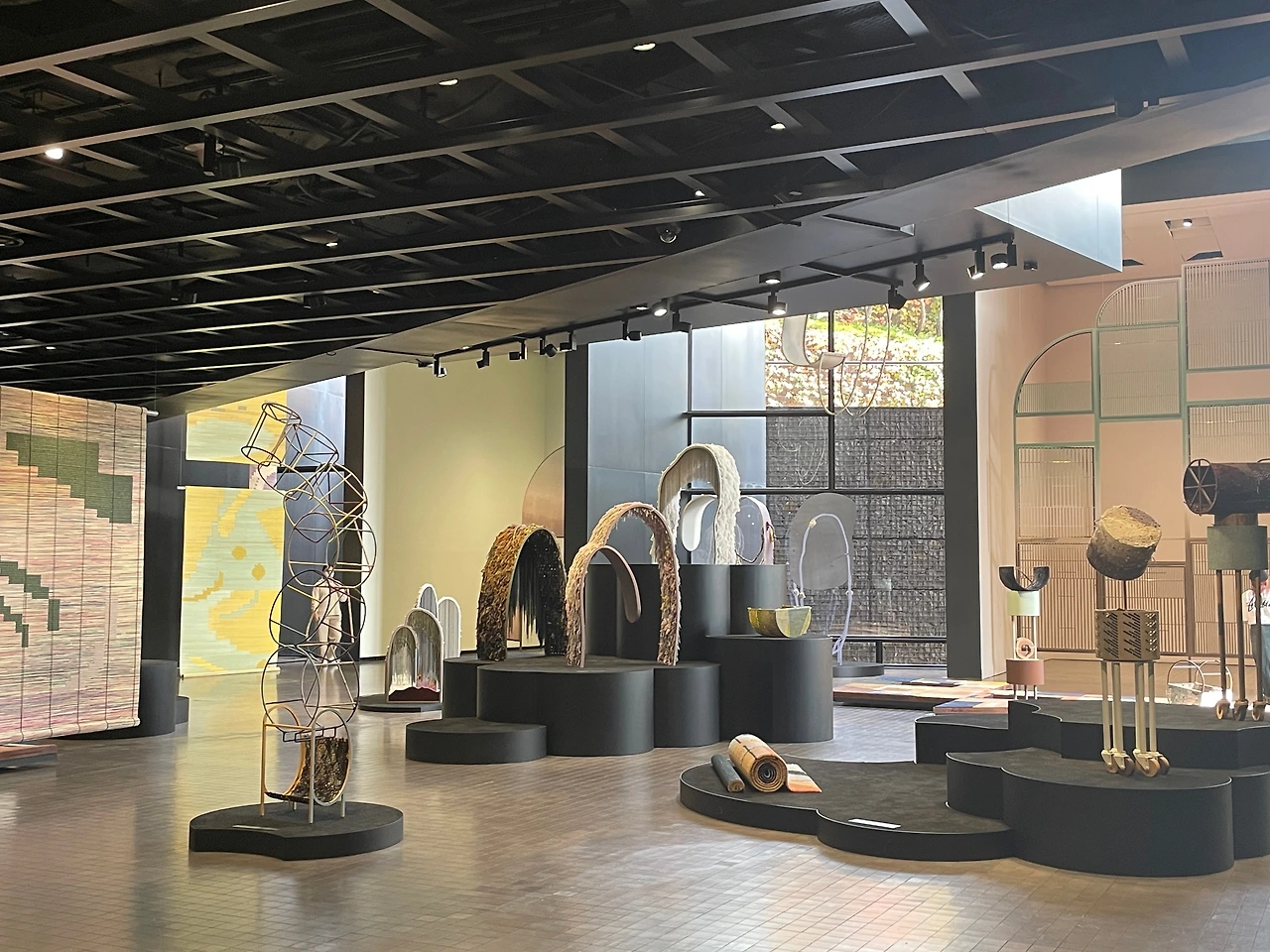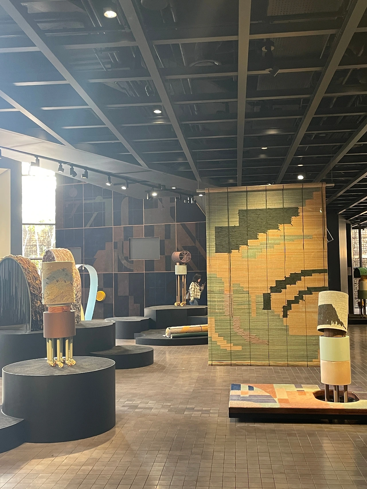 -작가는 화문석 제작을 위해 북한과 접경하고 있는 강화도의 장인들과 협업한다고 한다. 강화도의 하얀 갈대는 골풀보다 염료 흡수력이 높은데, 그곳에서 나는 자연 재료와 수백 년 전통을 이어받은 여성들과 함께 자리를 만든다. 자연에 자연을 물들이다 보니 색상이 굉장히 담백하다.