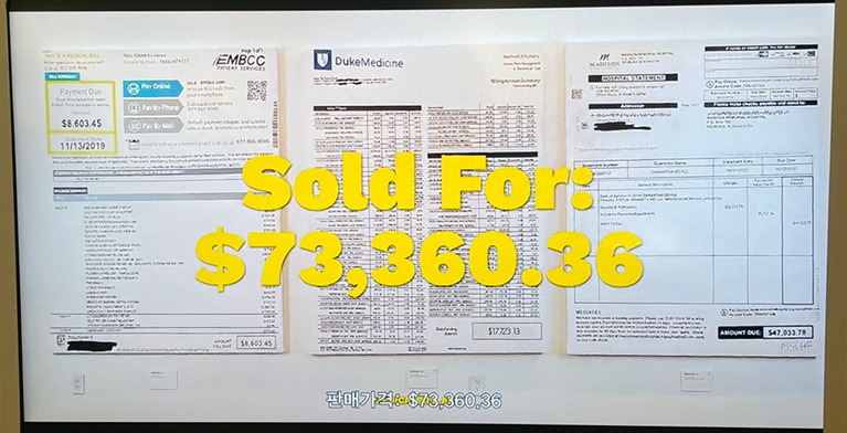 -미스치프는 미술 시장을 활용해서 이 문제를 해결했다. 의료비 청구서를 캔버스에 그린 후 미술품 경매 시장에 세워 의료비와 같은 가격인 9700만 원에 팔았다. 물론, 이 돈은 힘겨워하는 당사자들의 ‘빚’을 갚는 데 모두 사용했다. 여기서 또 주목해봐야할 건, 미국의 의료비 시스템 뿐 아니라 미술시장의 시스템일지도 모른다.