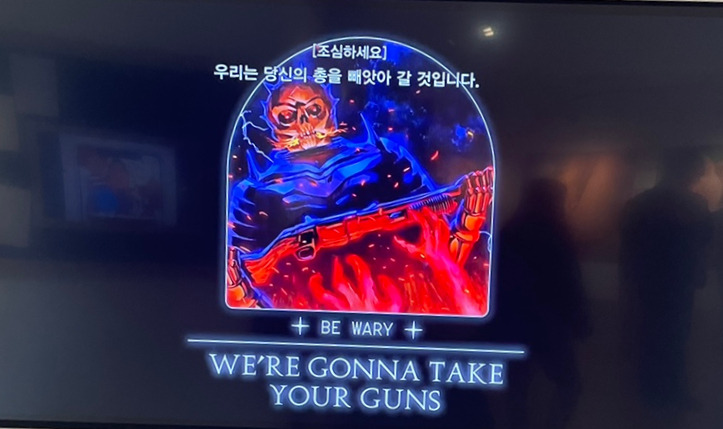 -남편에게 '이 아이디어 너무 좋지 않아?'하며 물어봤더니 자기가 예전에 스텐딩 코미디에서 봤던 총기사용 규제 방법이 훨씬 현실성 있다며 알려줬는데, 그 분은 '총알 하나에 5000달러 하면 아무도 집단난사를 하지 못할 것이다.'라고 이야기 했다. 내가 너를 죽이기 위해 매우 열심히 투잡을 뛰고 몇 년동안 일을 할거야! 라고 하는데 신박하고 웃기긴 했지만 이것도 결국은 모든게 돈으로 치환돼버리는 것 같아서 속으로는 안웃겼다. 근데 이 멋진 검은....! 나에게 총은 없지만 마법사의 검이 생긴것 같은 위안감을 주기도 하니까.