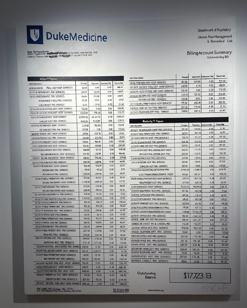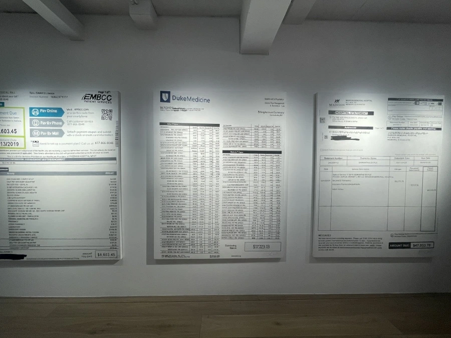 -가장 '멋지다'고 생각했던건 의료비 청구서를 그린 ‘메디컬 빌 아트(Medical Bill Art)’다. 그림 세 개는 각각 다른 사람의 실제 의료비 청구서를 모델로 했다. 미국의 무시무시한 의료비의 실태를 보여주기도 하면서 긍정적 영향을 미친 프로젝트이다. 전시된 그림의 청구비는 모두 합쳐 우리 돈으로 9700만 원 정도. 아파서 병원에 갔을 뿐인데, 1억을 내야한다면 병원 못갈듯...