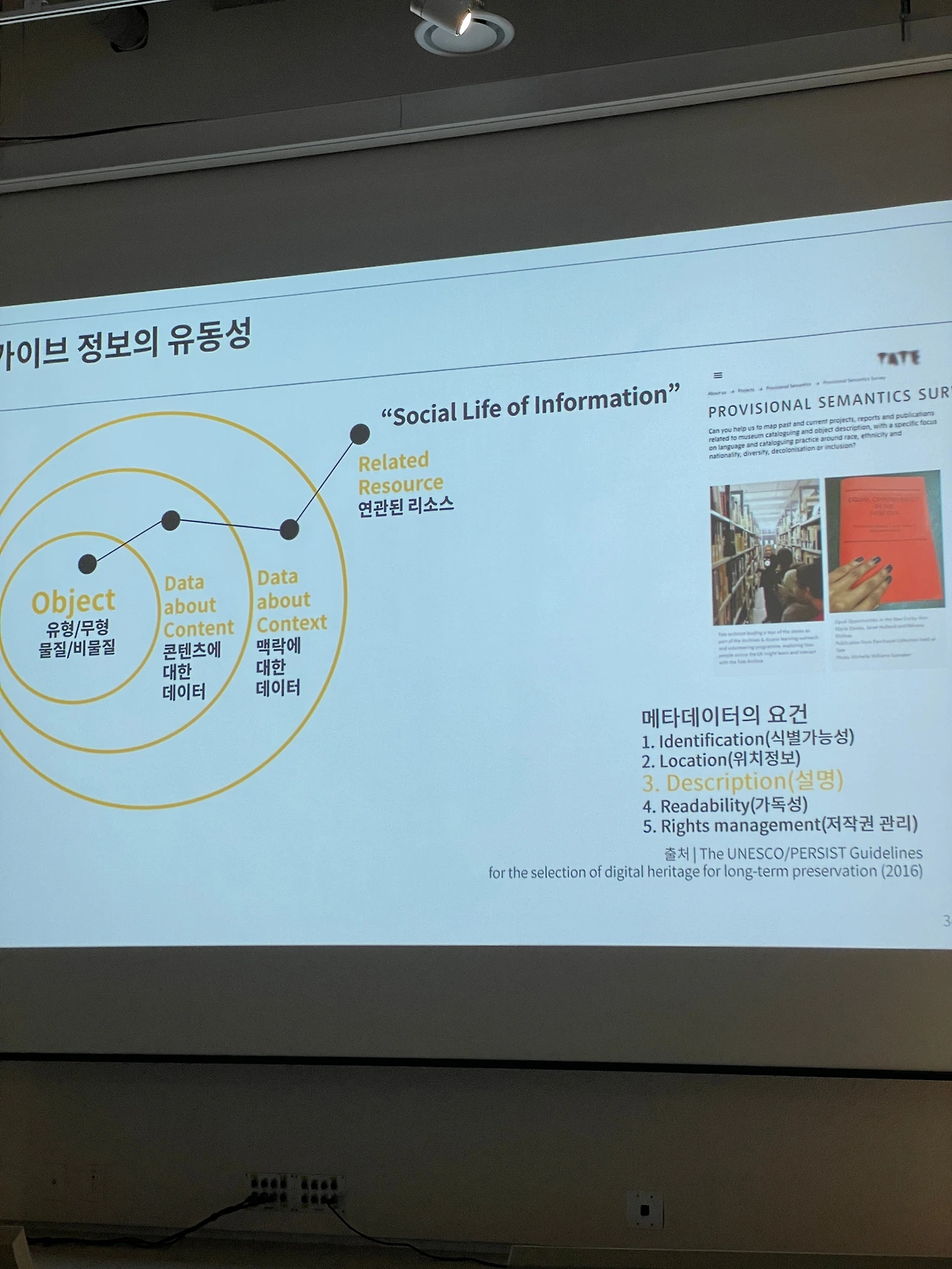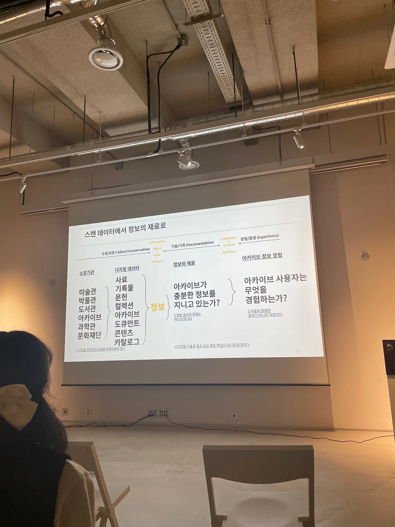 -개인적으로 사용자 경험에 초점을 맞춘 내용이어서 정말 흥미롭게 들었다. 아카이빙된 자료가 사용자에게 실제적인 정보로 사용될 수 있도록 하려면 어떻게 해야 하는가?의 문제는 개인의 문제로 끌어들여 와서, 내가 수집하고 있는 자료들을 어떻게 가공할지를 고민해 보게 만들기도 했다.