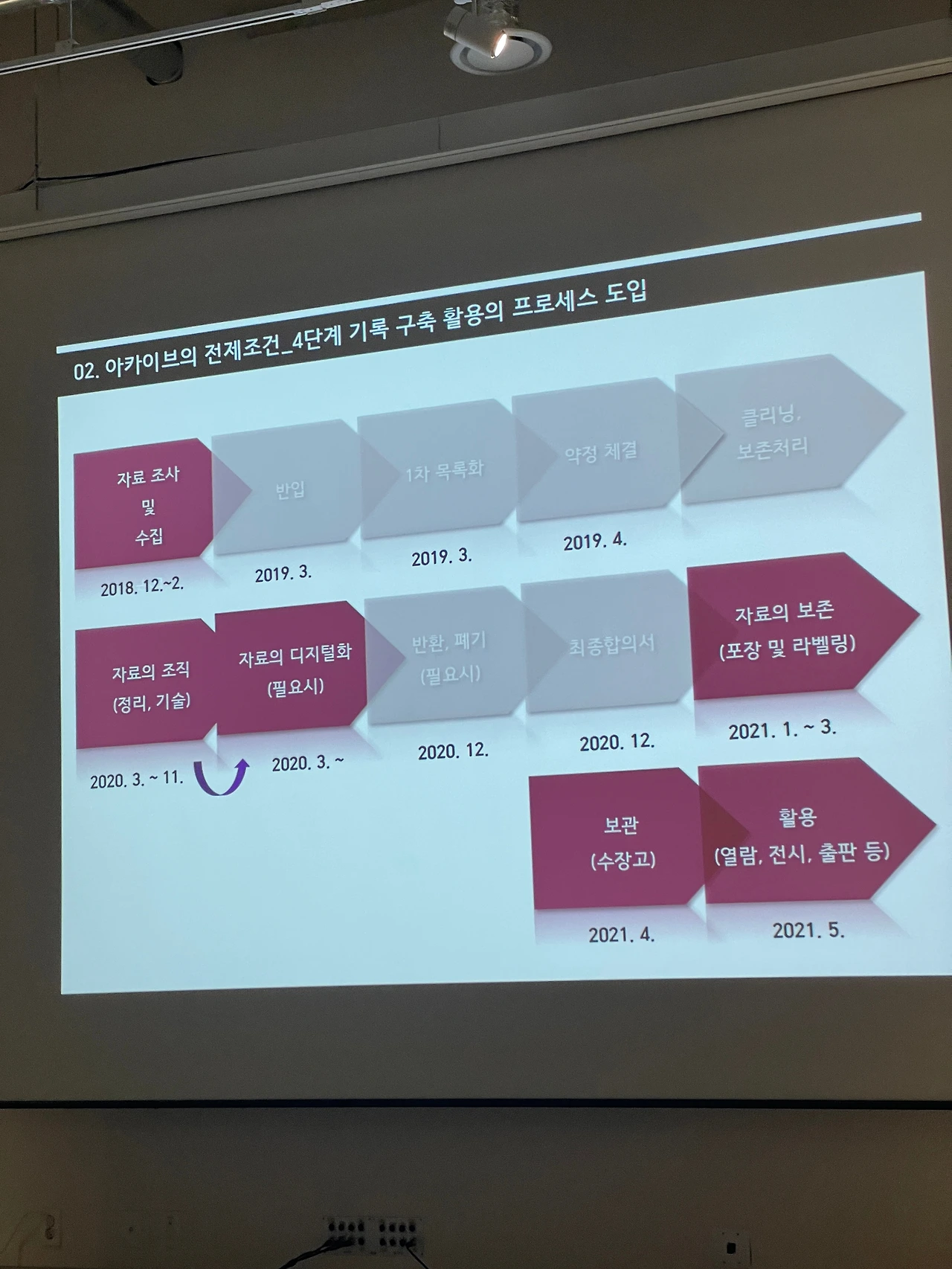-물리적 아카이브를 만들기 위해 기록 구축을 위한 공간이 마련되어야 하며, 수장고 보관 및 기록 보존을 위한 환경 조건이 생각보다 까다로웠다.