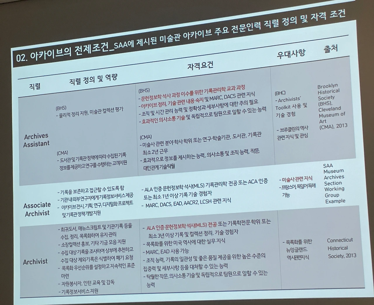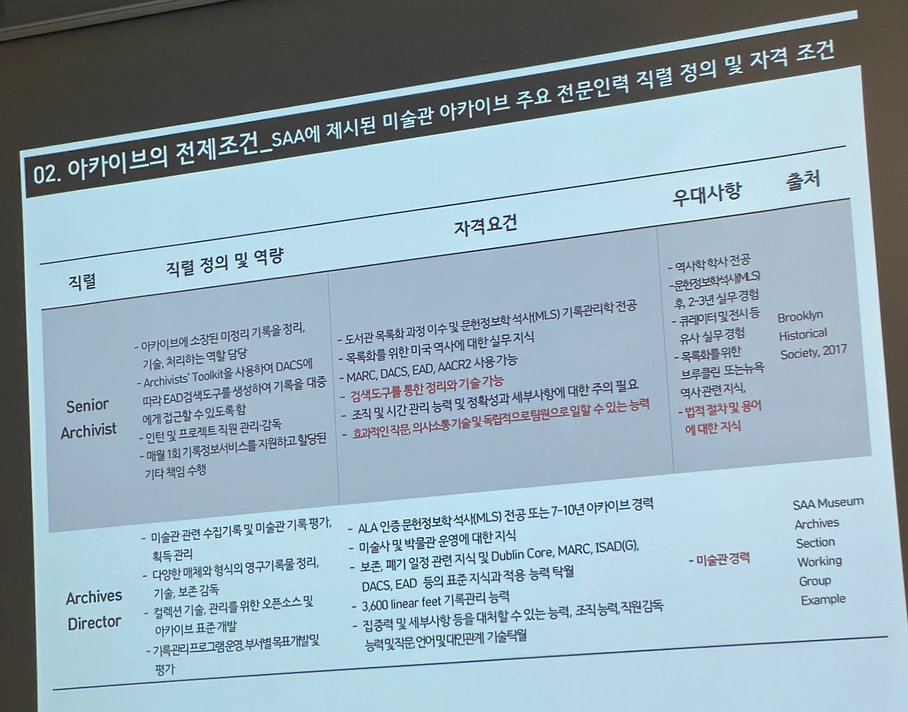 아카이브 주요 전문인력 직렬 정의 및 자격 조건