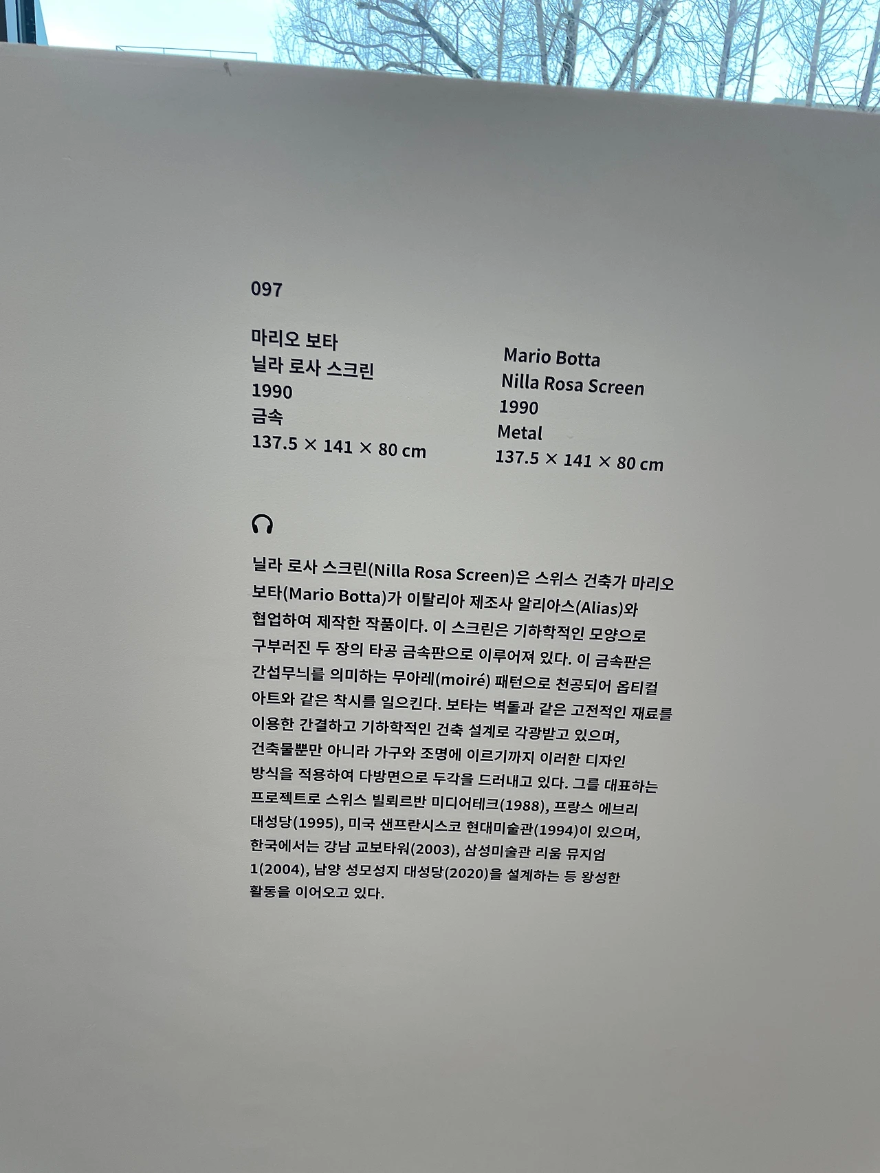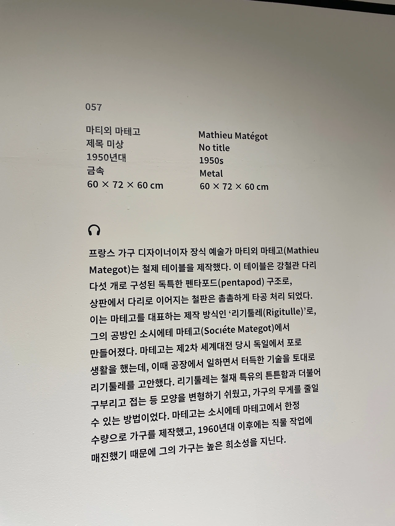 -현대 디자인의 모태가 되기도 하며, 20세기를 대표하는 디자인 가구 110점이 순서대로 자리 잡고 있는 곳. 르코르뷔지에, 장 프루베, 찰스&레이 임스, 한스 웨그너 등 모던 디자인의 거장부터 필립 스탁, 론 아라드 등 동시대 산업디자이너 작품까지 오리지널 디자인 가구를 보면서 취향을 알아가기도 좋은 전시다.