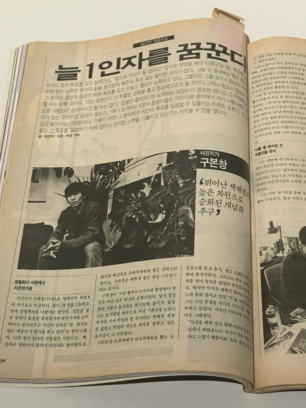 워커힐 미술관에서 열렸던 <사진 새 시좌>전은 영상언어에 익숙한 세대의 참여 작가들이 '이전 세대의 사진과' 확연히 다른 모습을 보이기 위해 만들어졌다. 국제적인 사진의 식견을 가지면서 투철한 시대의식을 소유했고, 귀국 후 빠르게 변화하는 서울에서 다시 이방인으로서 느끼는 감정을 분출하는 작품을 제작한다.