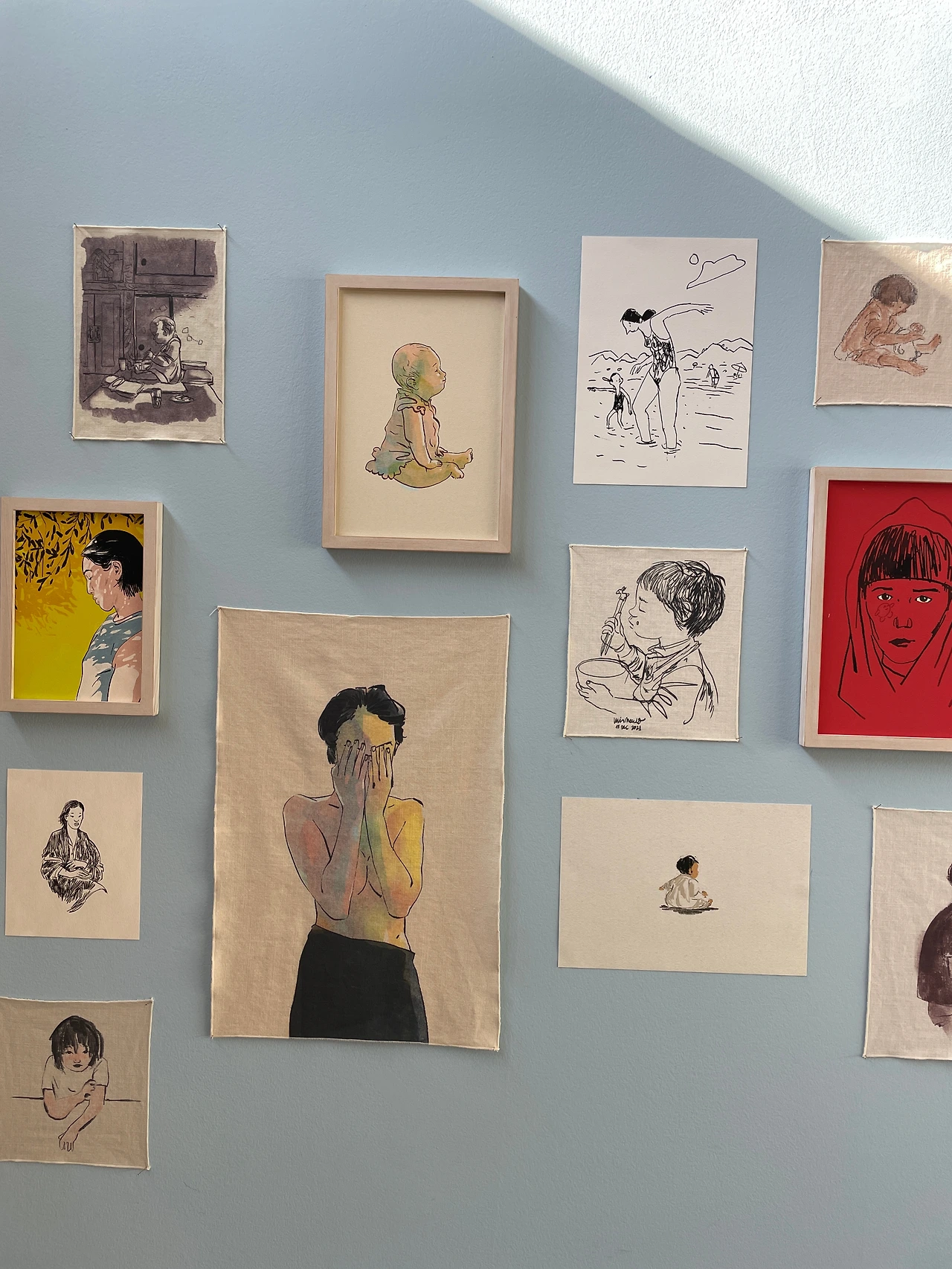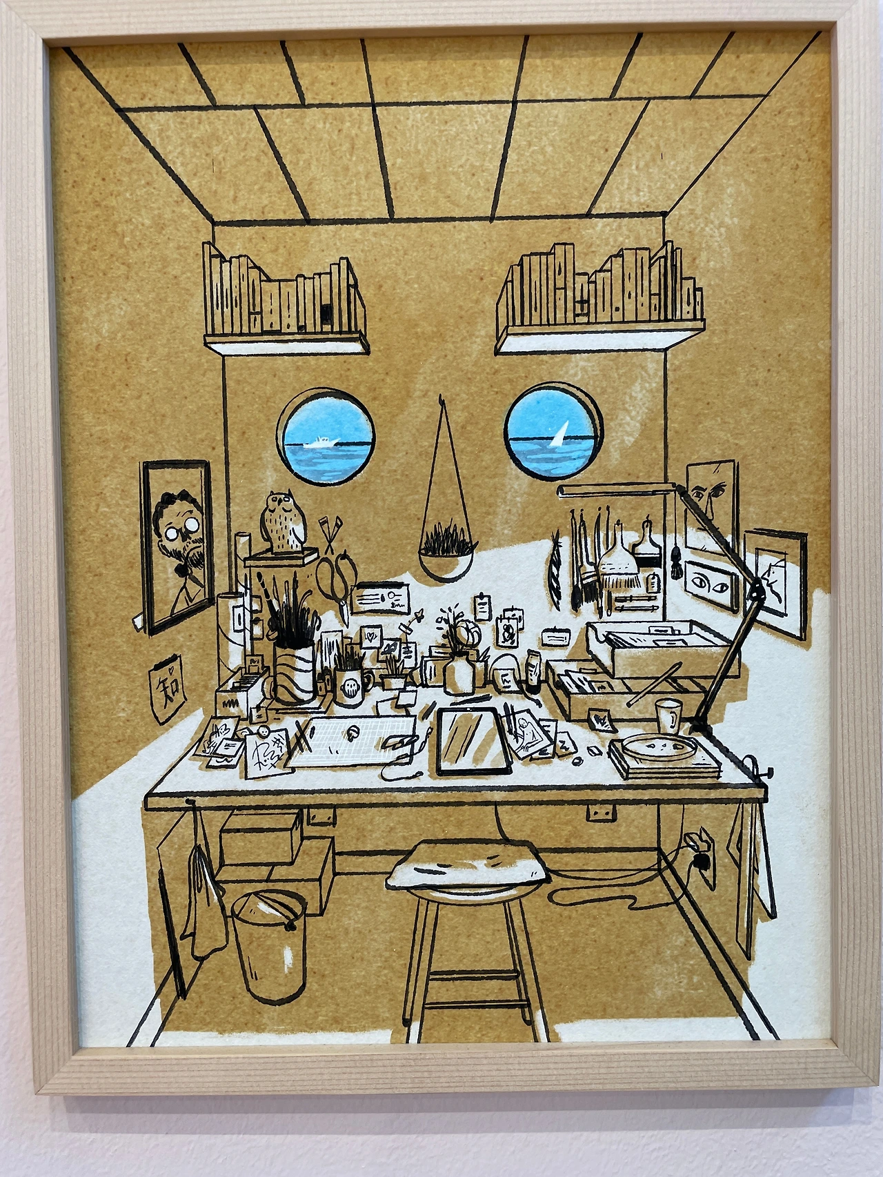 1960 스페인 출신, 그래픽 디자이너와 아트 디렉터를 거쳐 일본에서 결혼하여 일러스트레이터로 활동하고 있는 작가. 전시에서 모든 걸 그림으로 그리려는 열정을 보았다. 자기 일을 사랑하는 사람을 보면 나도 모르게 그 사람을 동경하게 된다. 그 열기가 옮겨오는 것 같다. 특히나 ‘일러스트레이터로서 중요한 건 내가 그릴 수 있는 것과 아는 것을 모아둔 방대한 라이브러리가 머릿속에 있어야 한다는 것이다.’라는 생각을 정말 도서관처럼 디스플레이해둔 공간이 가장 강렬했다. 재료, 에세이, 동물, 자화상, 초상, 포즈로 섹션을 구분하고 그 안에 작가의 스케치와 에세이를 배치했다.