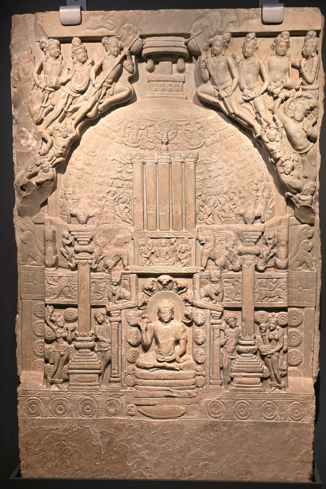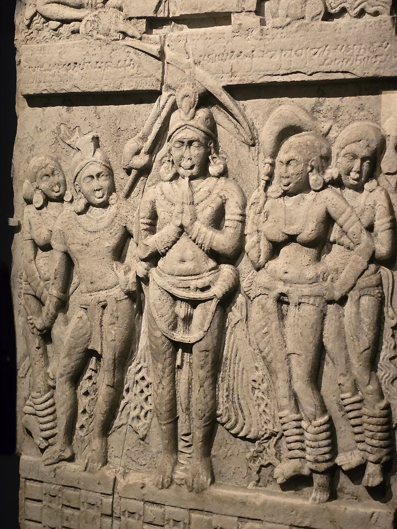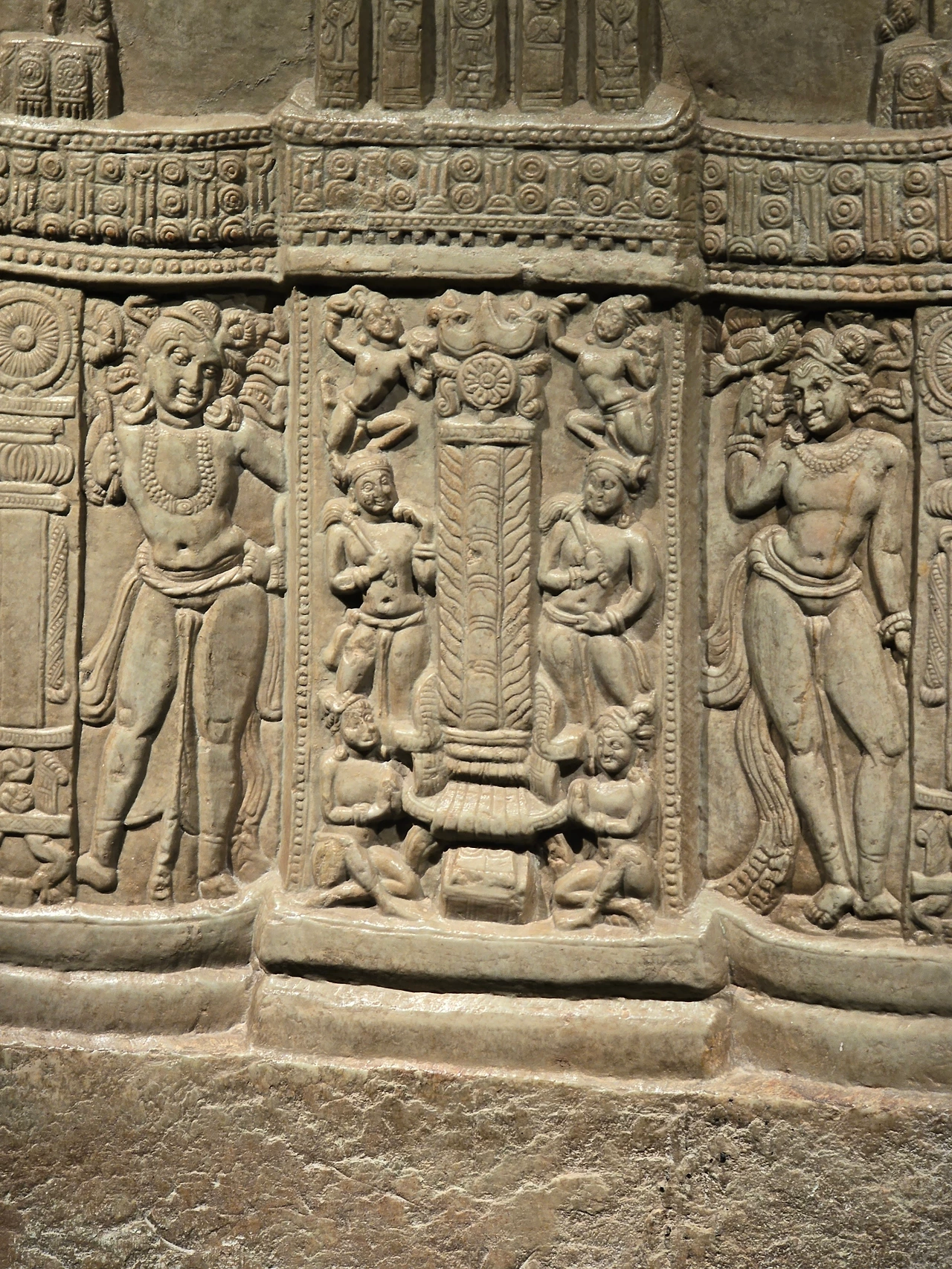 스투파 안으로 들어가는 문을 장식하던 조각. 문은 2개의 기둥을 가로지르는 3단의 인방으로 만들어짐.