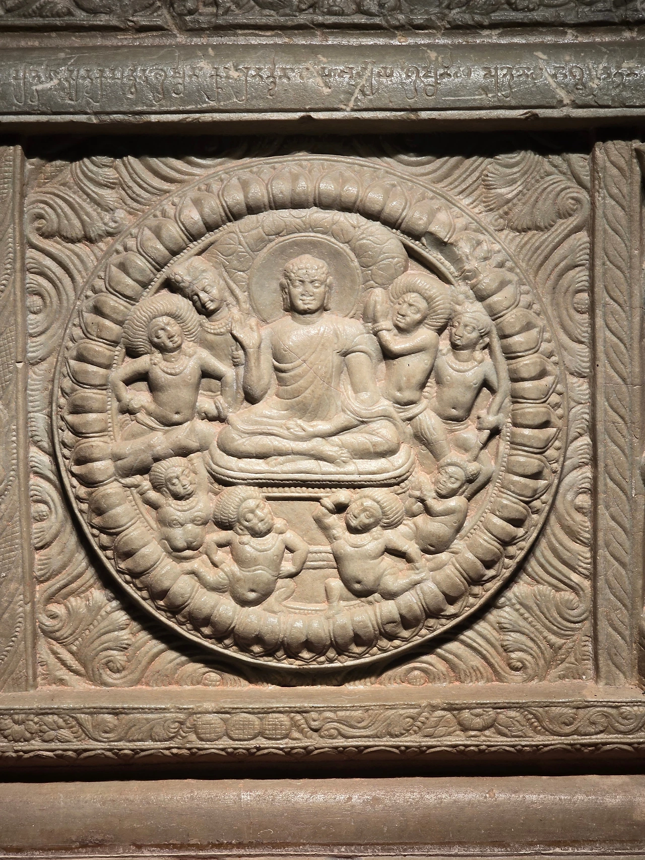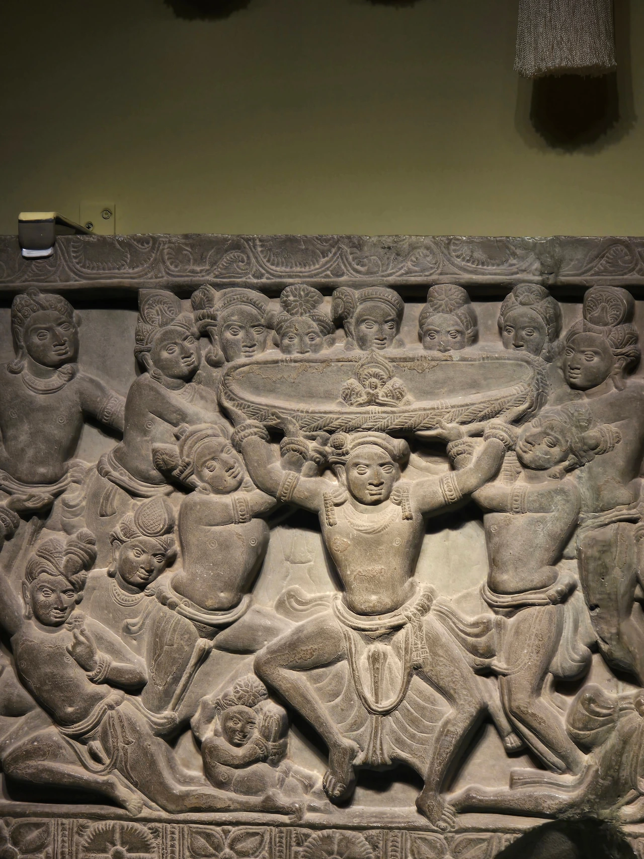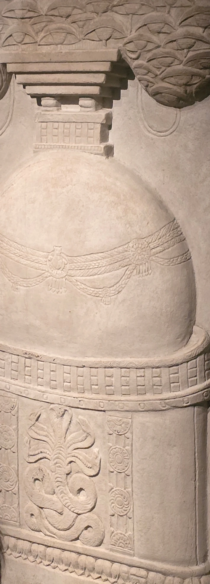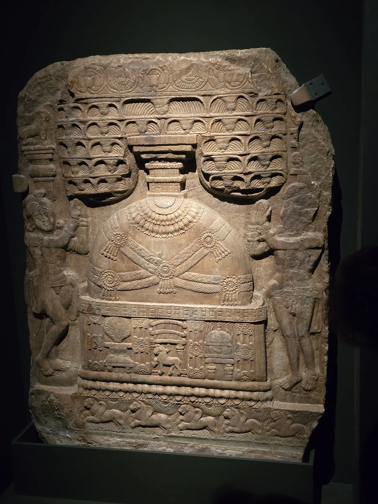 스투파 안으로 들어가는 문을 장식하던 조각. 문은 2개의 기둥을 가로지르는 3단의 인방으로 만들어짐.