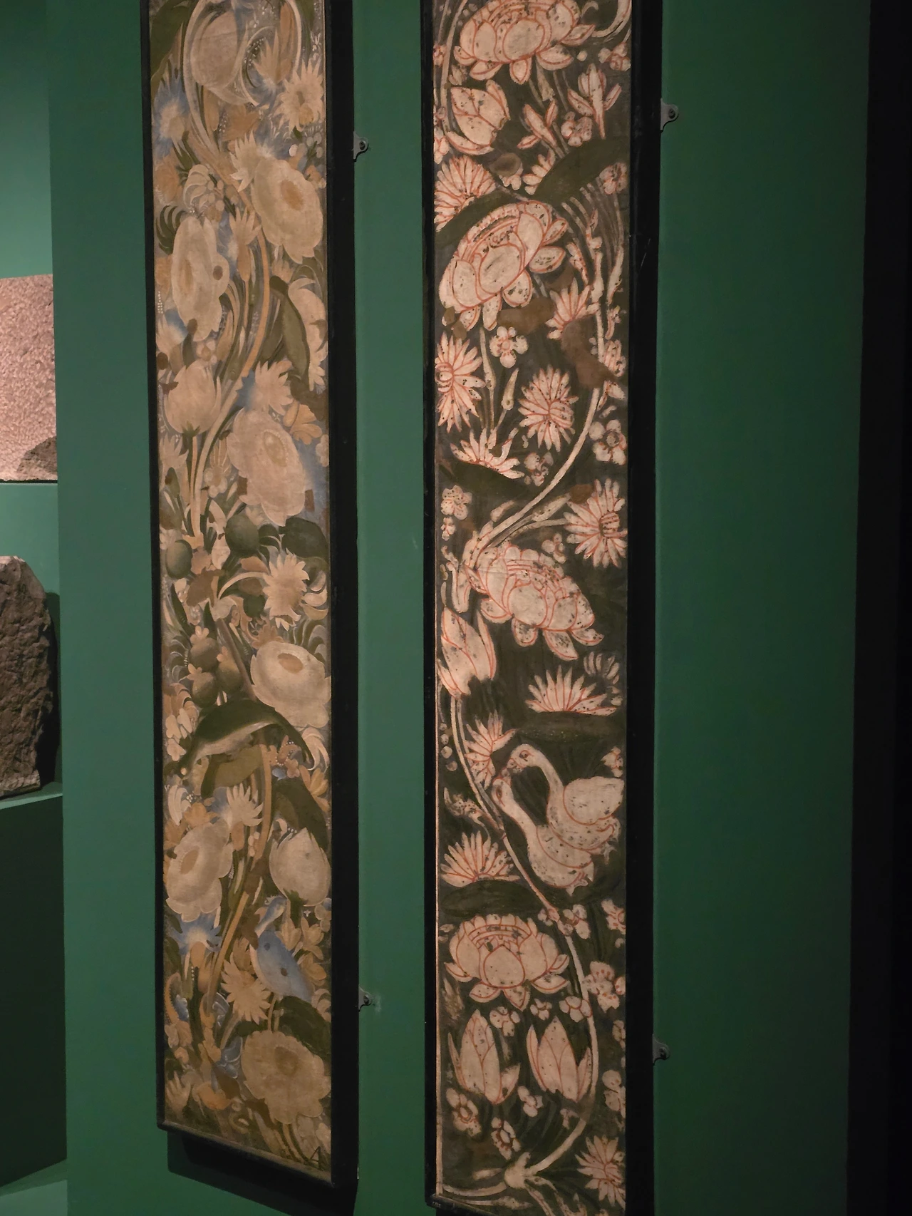 물이 가득 담긴 풍요의 항아리와 물 위에서 피어나는 연꽃이 바로 그 예인데, 계속해서 뻗어나가는 연꽃 넝쿨은 자연의 무한한 생명력을 나타낸다. 넝쿨 사이의 푸른 연꽃 그리고 그 옆에는 전설 속의 새 ‘함사’가 있다. 이 친구도 물과 풍요로움을 상징한다.