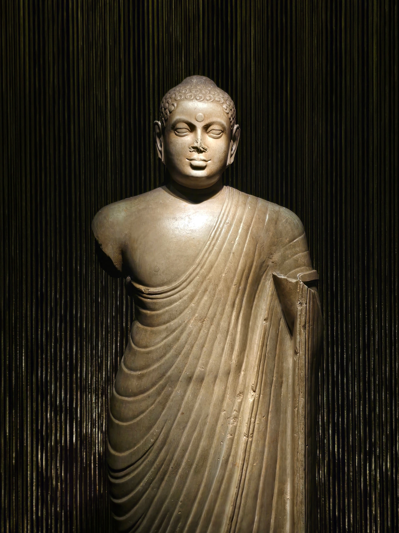 예배할 때 사용하는 불상은 북인도에서 가장 처음 만들어진다. 하지만 남인도에서도 남인도만의 불상이 만들어졌다. 간다라 불상과 다르게, 우견편단의 얇은 옷, 밝은 표정, 두꺼운 입술의 인도인 얼굴, 소라모양의 낮은 육계(머리 위에 올라온 상투 같은 것)가 특징이다.
