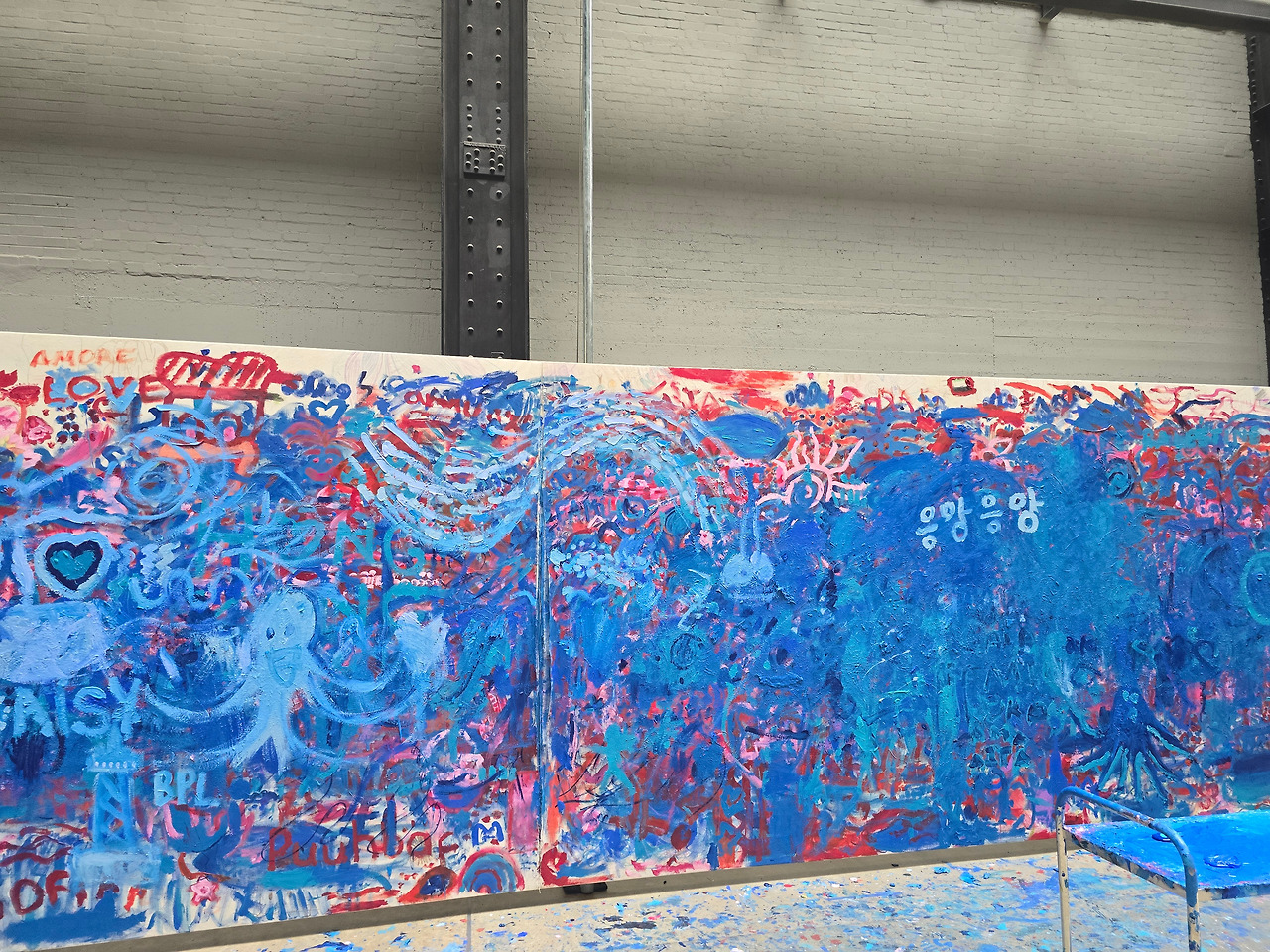 사람들이 모인 곳에 줄을 섰다. <The flooded garden>에 참여하여 트레이 위에 흥건히 짜인 물감을 푹 찍어 영역 표시를 해본다. 누군가의 흔적 위에 계속해서 덧칠하는 행위를 백내장의 혼탁 효과에 비유한 작가의 의도를 어렴풋이 짐작한다. 거대한 캔버스에 물을 붓듯 참여자의 표식 위에 덧칠하는 행위가 얽히고 덮이고 쌓여 만들어지는 사회 같았다.
