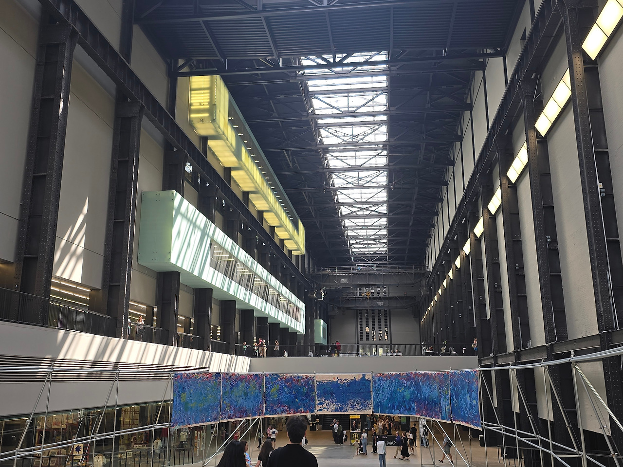입구에 들어서자마자 보이는 39m 높이의 거대한 전시장인 터빈 홀은 서양에서는 광장, 우리나라로 치면 마당 같은 역할을 한다. 매년 10월부터 다음 해 4월까지 동시대에 가장 유명하고 시의성 있는 작가 한 명을 후원하여 이 공간을 가득 채운다. 특히 올해는 한국 이미래 작가님 전시가 이루어져서 기대된다. 현재는, 2019년 영국 터너상 수상자였던 오스카 무리요(Oascar Murillo)의 관객 참여형 작품을 진행하고 있었다. 나와 같은 여행자를 포함하여 다양한 인종과 어린이가 어우러져 신나게 참여하는 모습이 인상적이었다.
