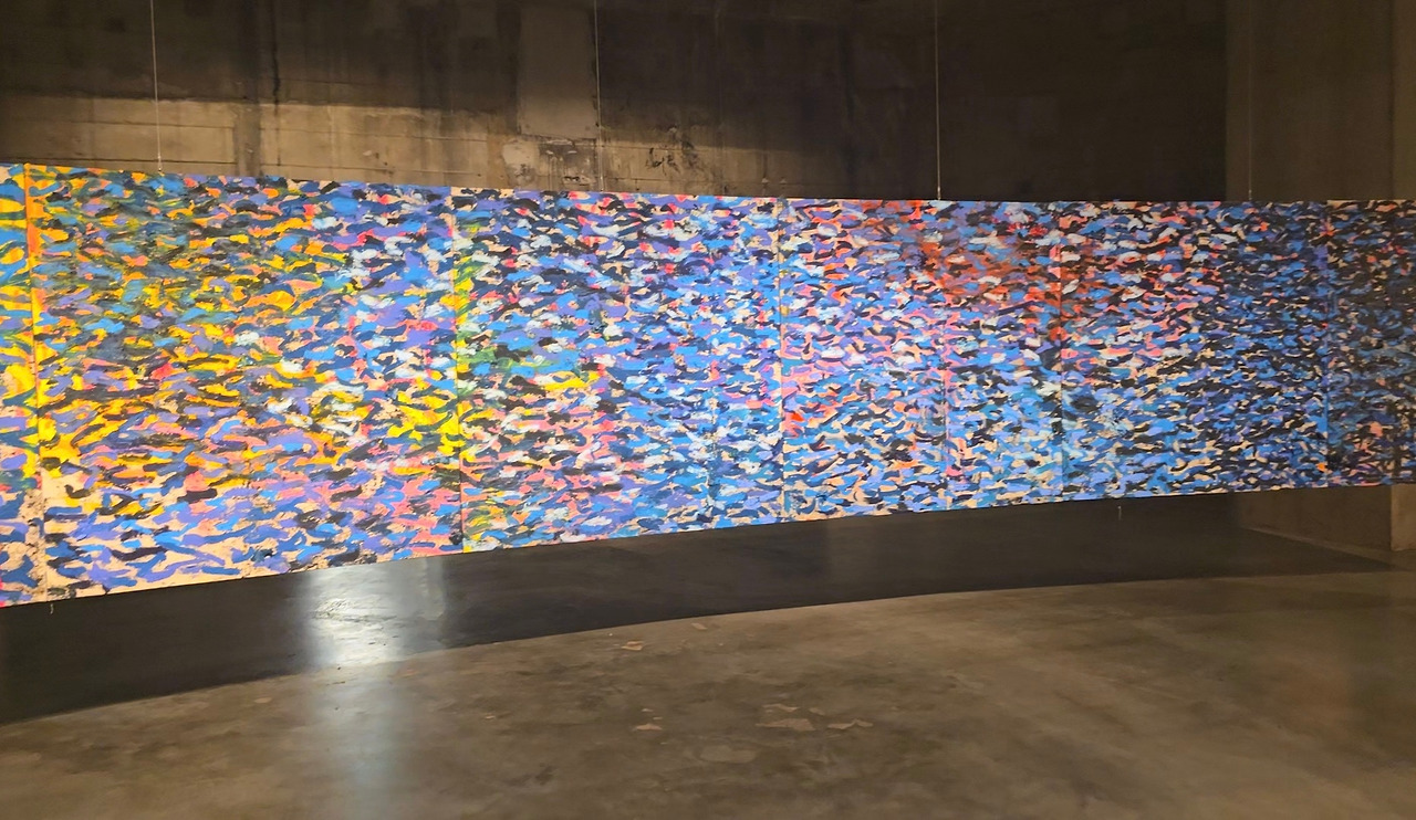 전시는 터빈 홀에서부터 과거에 오일 저장소로 쓰였던 ‘사우스 탱크’ 전시실로 연계된다. 공간에 처음 들어서면서 ‘모네가 그린 수련 연작에 짙은 감정이 실린다면 이런 느낌일 것 같다!’ 생각했다. 멀리서 보면 여러 색상이 조화를 이루면서 수면의 빛을 반사하는 듯한 모습이고, 가까이 들여다보면 두터운 물감의 붓 자국이 켜켜이 쌓여 층을 이룬다. 짧으면서 두께감 있는 터치 하나하나가 힘 있게 느껴져서, 모네의 포근한 느낌과 대조되기도 했다. 가로로 둥근 곡선형의 파노라마가 모네의 수련 연작이 전시된 오랑주리 미술관을 연상케 했다. 작가는 실제로 모네의 수련에 깊은 영감을 받았다고 한다. 좋은 예술은 오래 살아남아 생명력을 유지하는 것 같다.