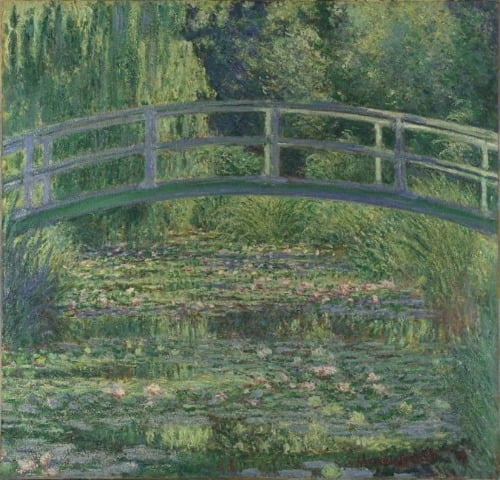 클로드 모네, 수련 연못, 1899, 런던 네셔널 갤러리(좌) 클로드 모네, The Japanese Footbridge, Giverny, 1922, 미국 휴스턴 미술관(우)